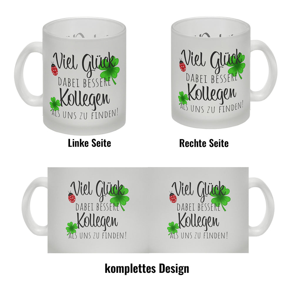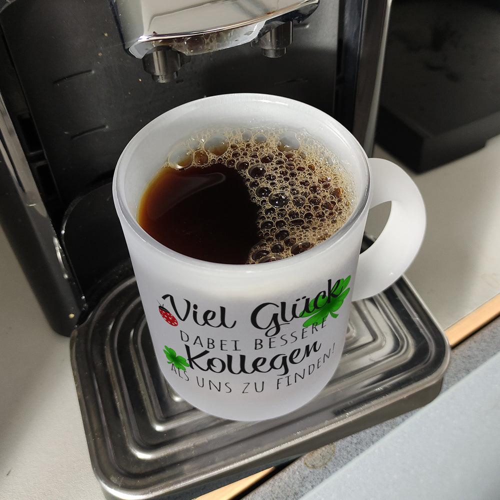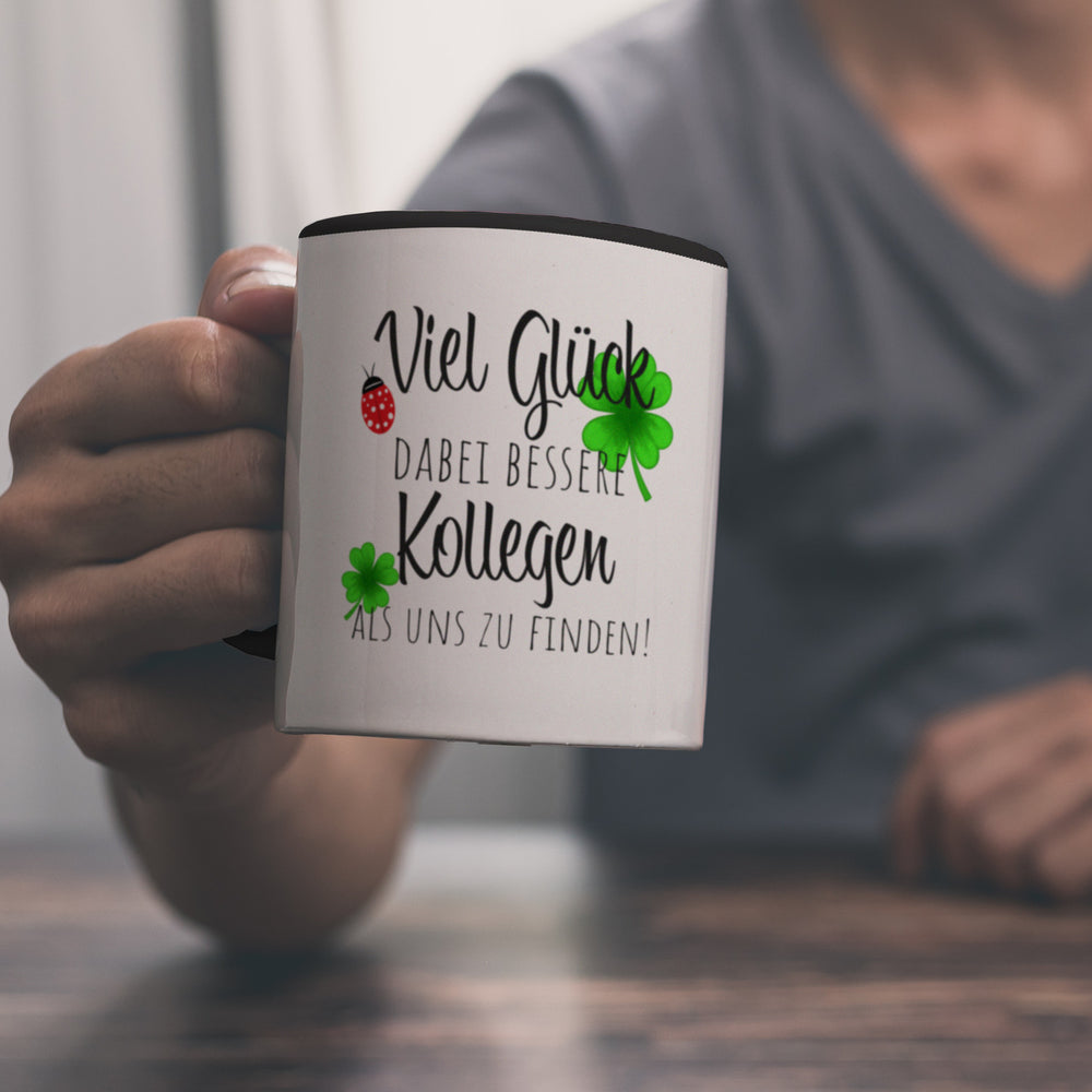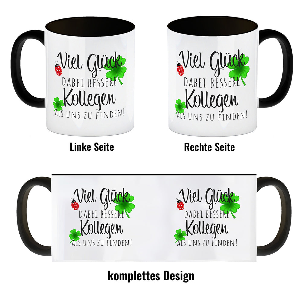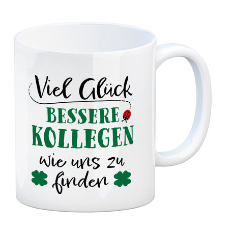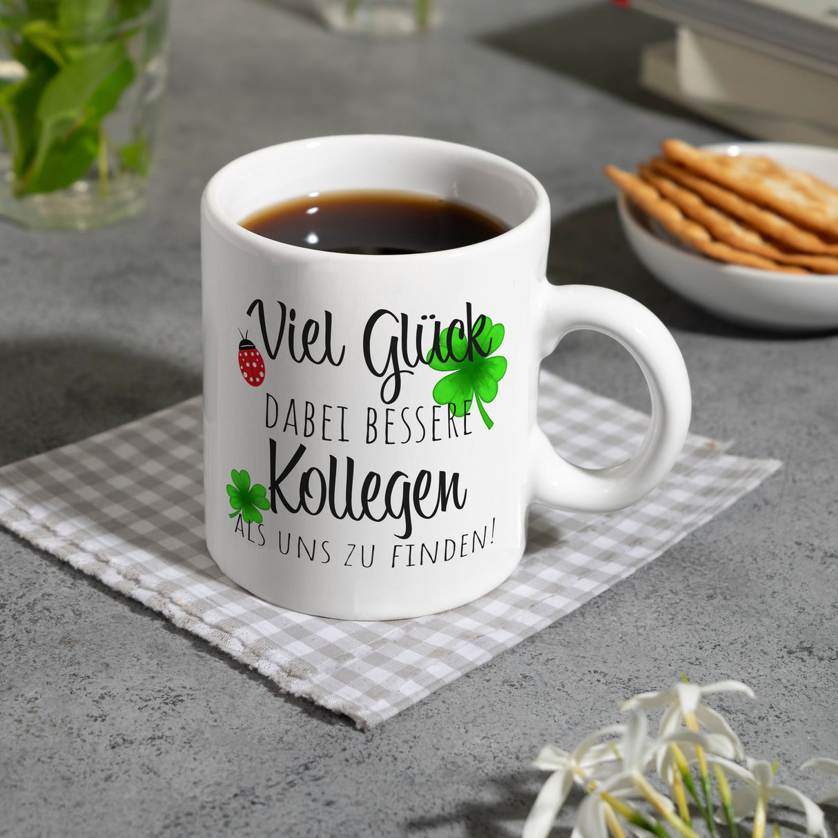 - 1x Viel Glück dabei, bessere Kollegen als uns zu finden Kaffeebecher in der gewählten Ausführung