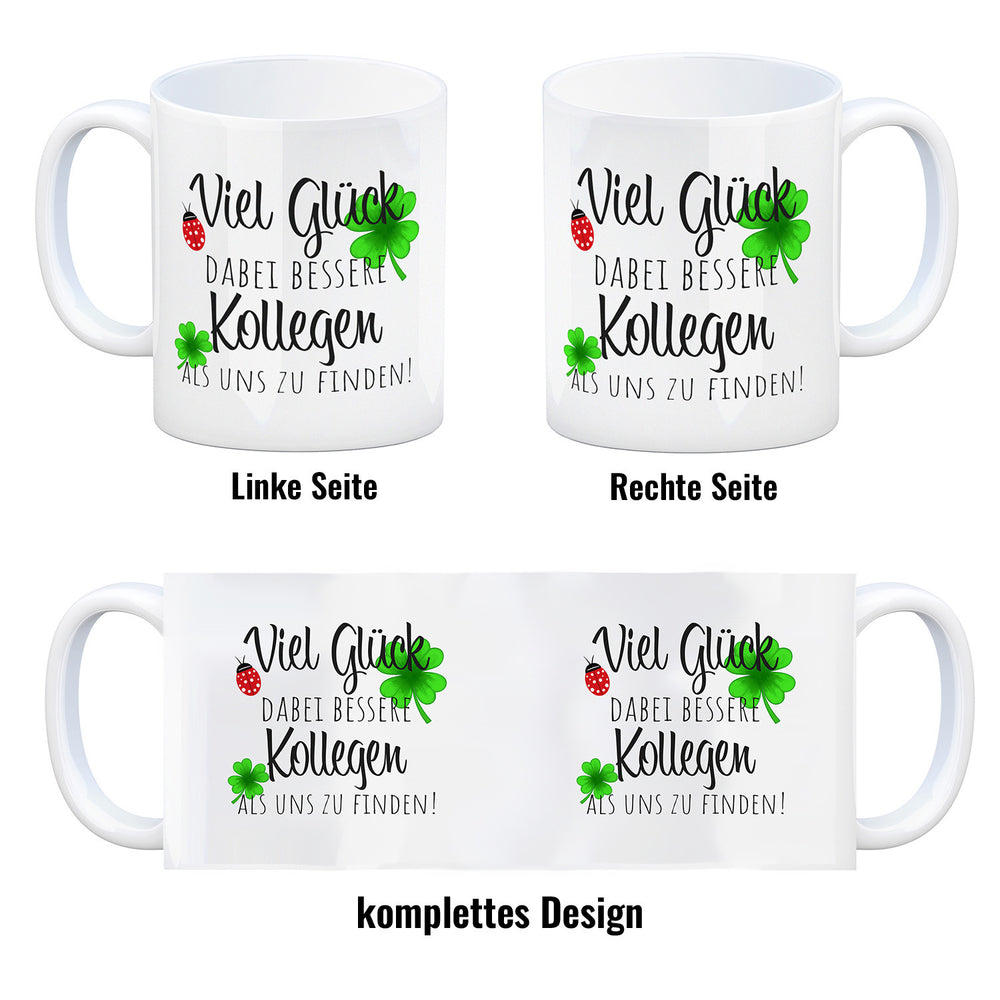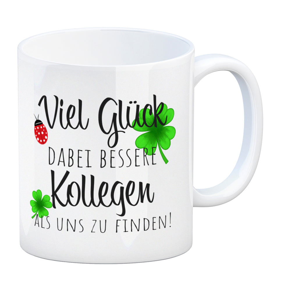 - In der heutigen Zeit sind Jobwechsel keine Seltenheit mehr, doch manchmal fällt uns der Abschied von bestimmten Kollegen und Kolleginnen schwerer, weil wir diese besonders ins Herz geschlossen haben. Mit dieser Tasse kannst du viel Glück wünschen.