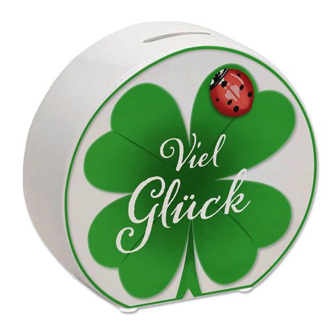 Viel Glück Spardose mit Kleeblatt und Marienkäfer