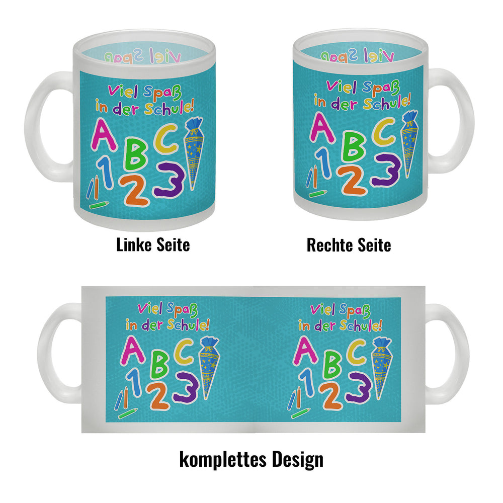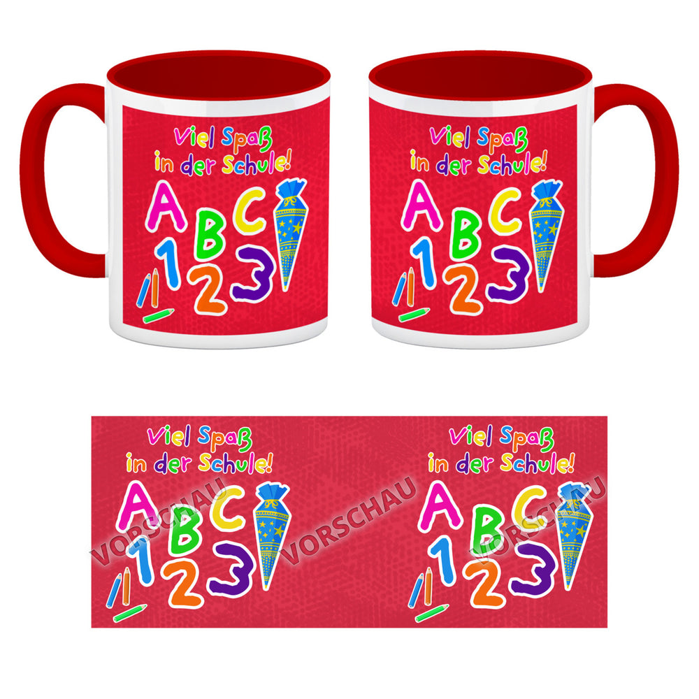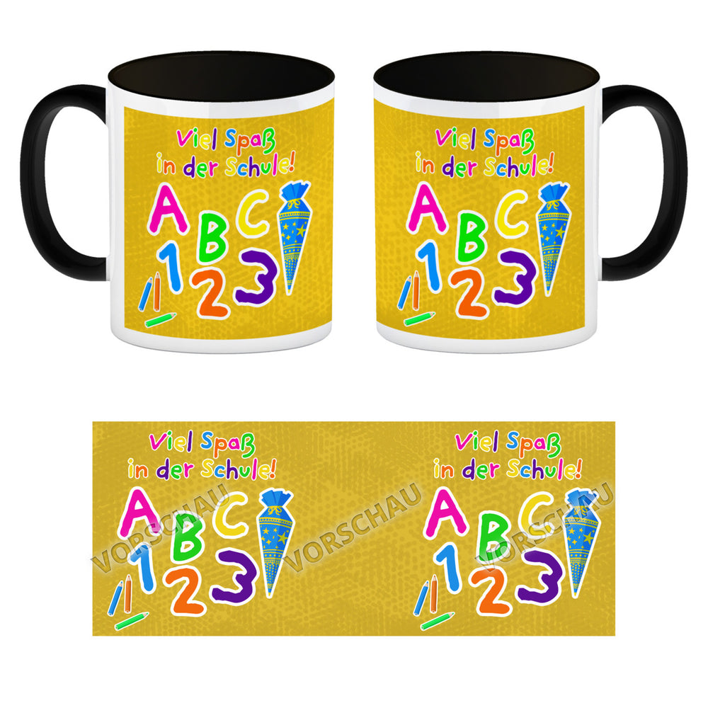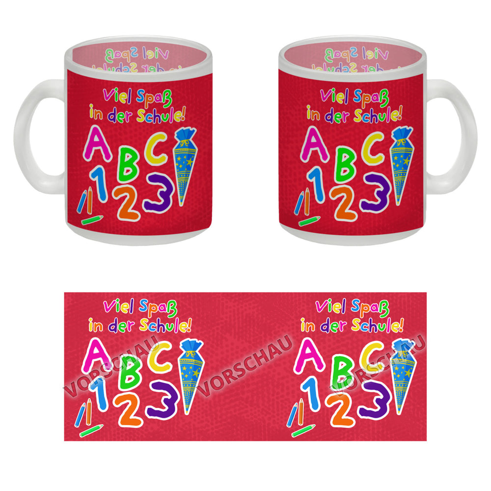- 1x Viel Spaß in der Schule Kaffeebecher für die Einschulung in der gewählten Ausführung