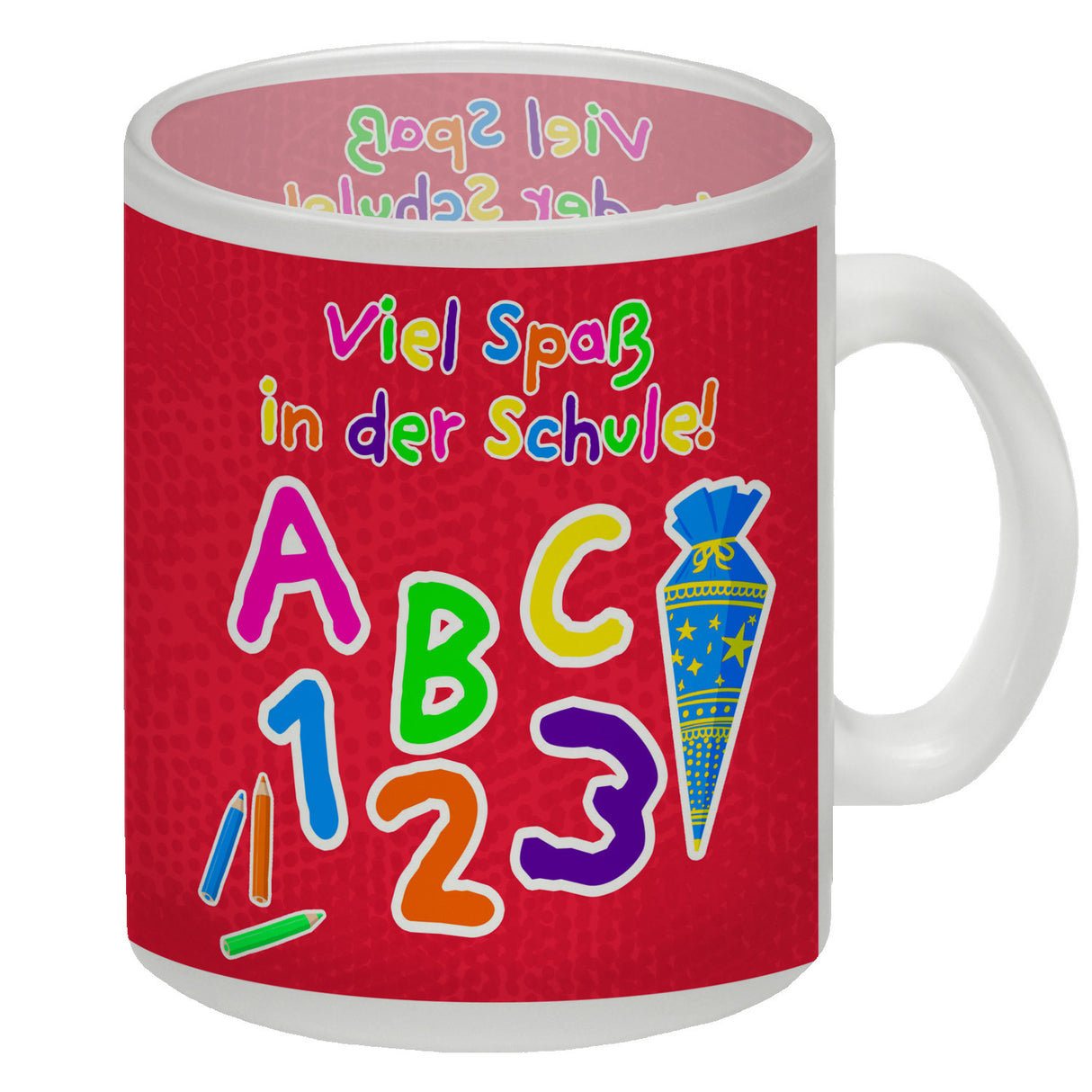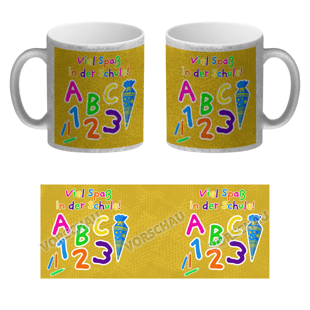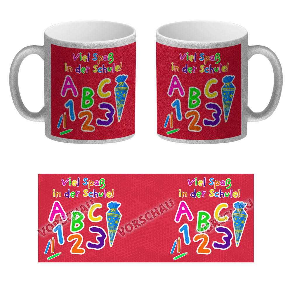 - 1x Viel Spaß in der Schule Kaffeebecher für die Einschulung in der gewählten Ausführung