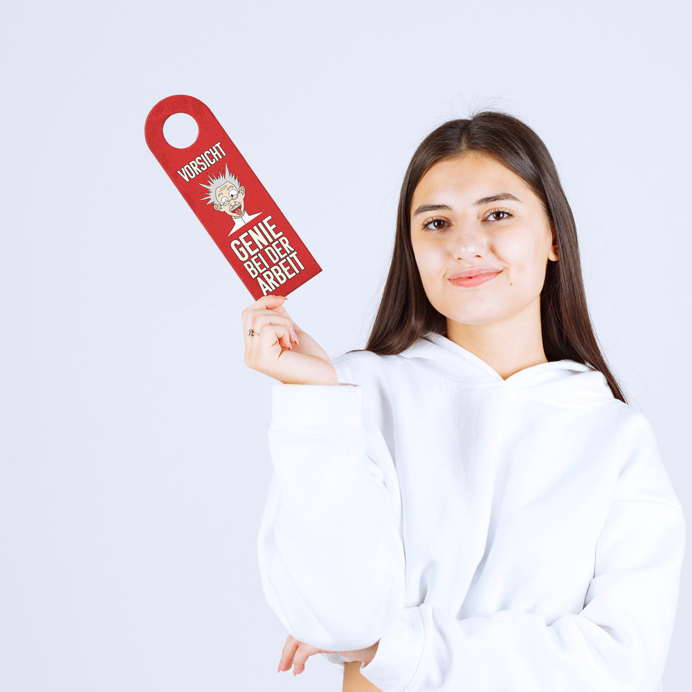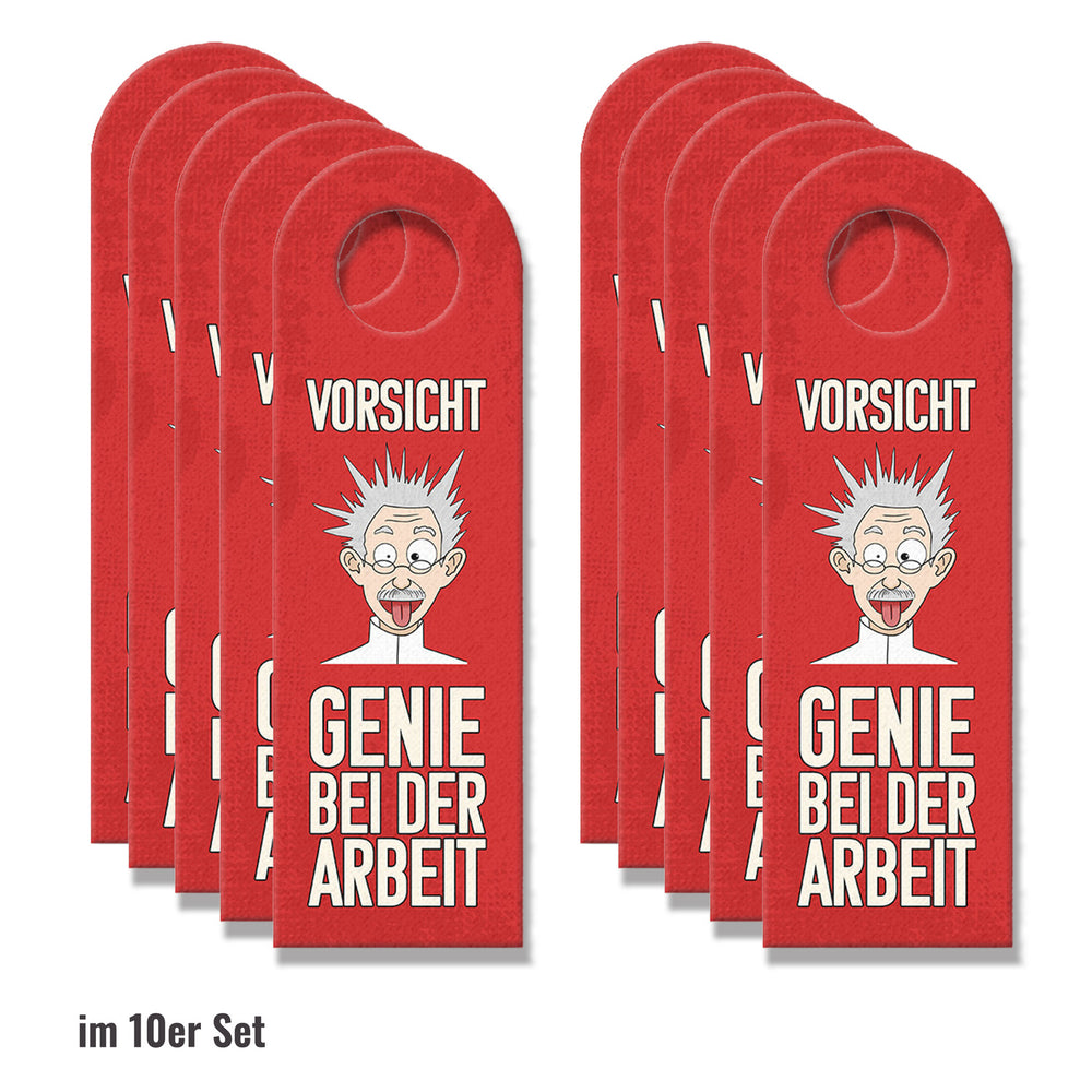 • 1x Vorsicht Genie bei der Arbeit Türhänger in der gewählten Setgröße