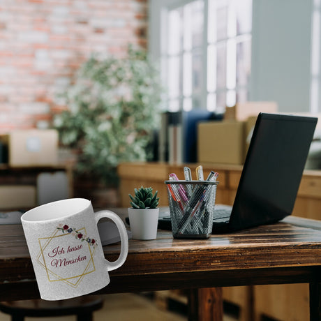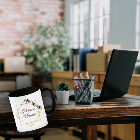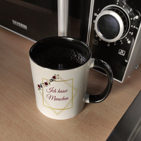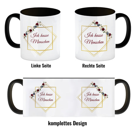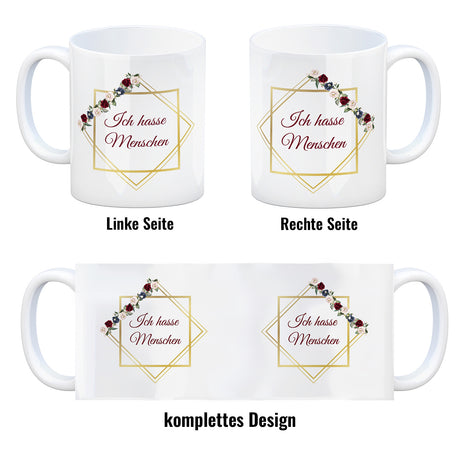 Ab €12,95Grundpreis /Nicht verfügbarAuf LagerIch hasse Menschen Kaffeetasse mit goldenem Rahmen und Blumen