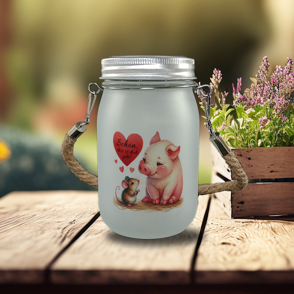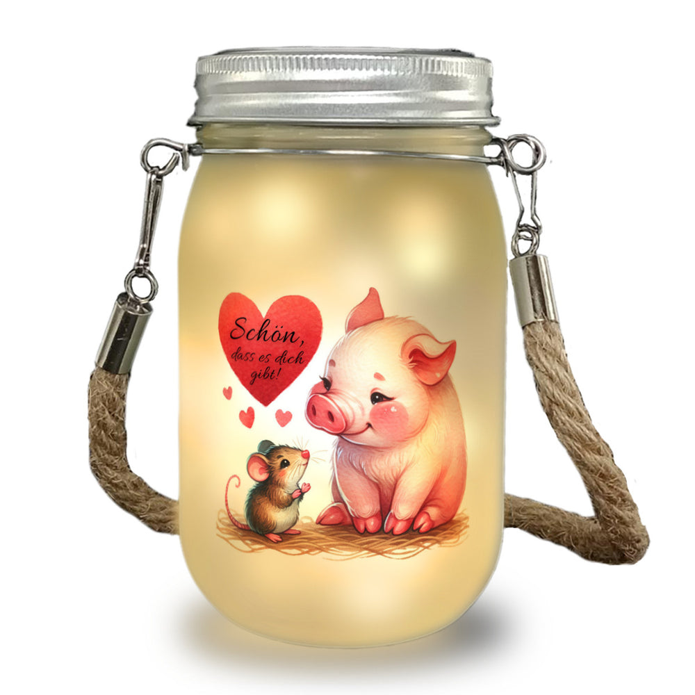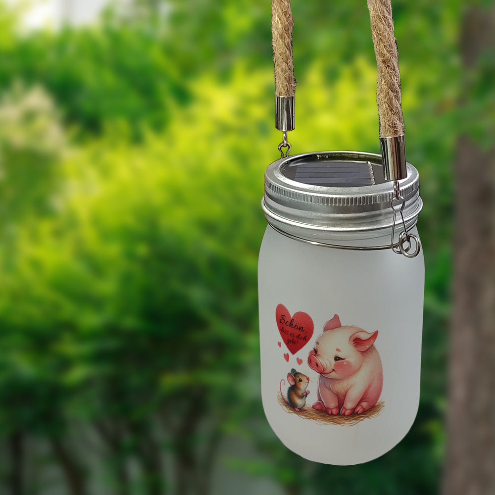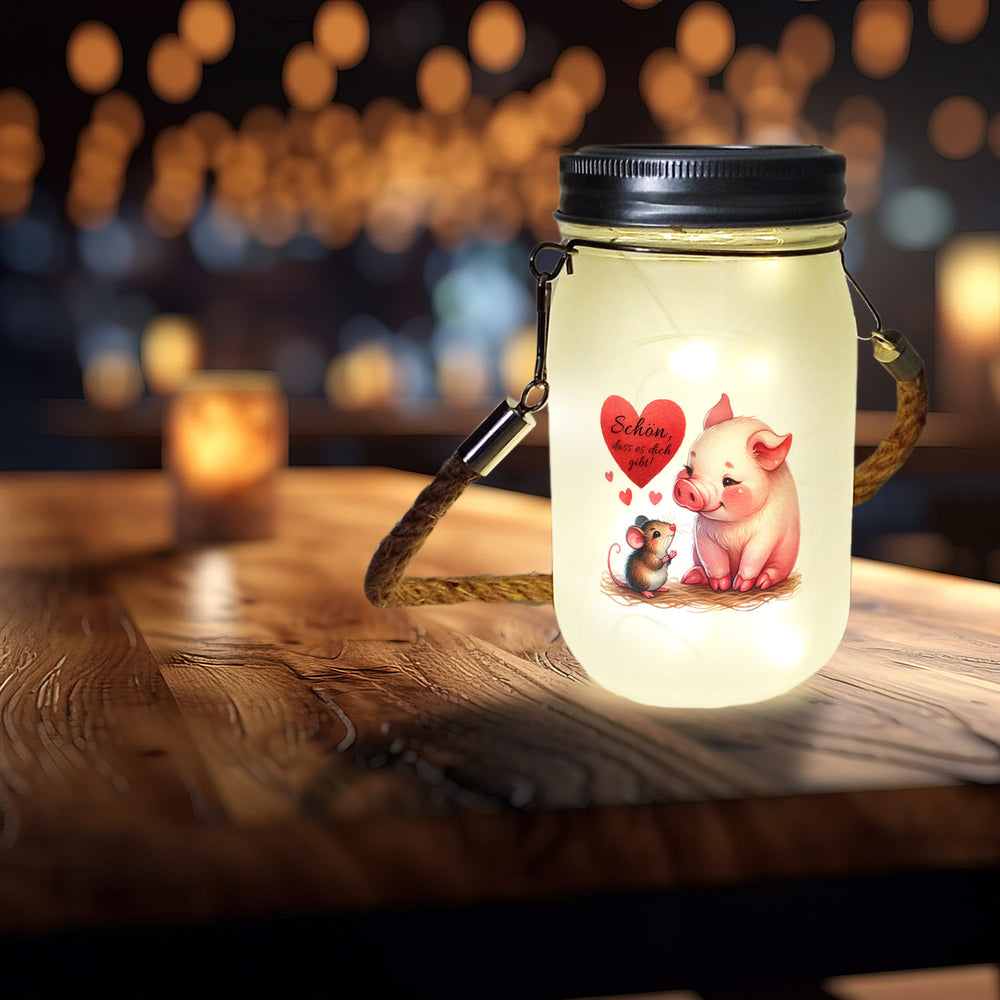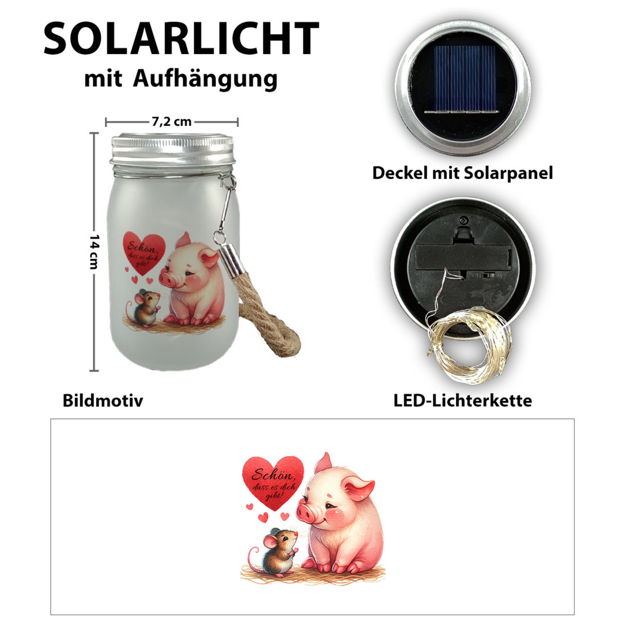 Schwein mit Maus und Herz Solarlicht mit Spruch Schön dass es dich gibt
