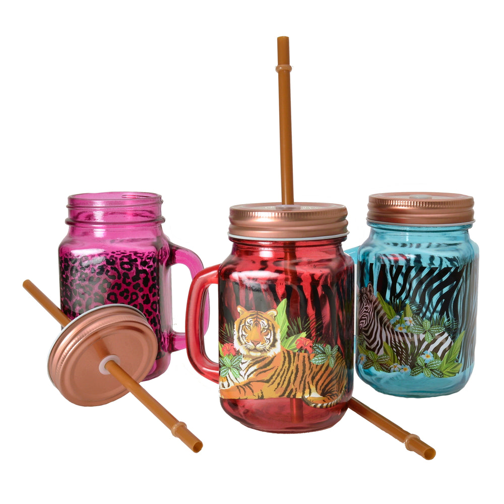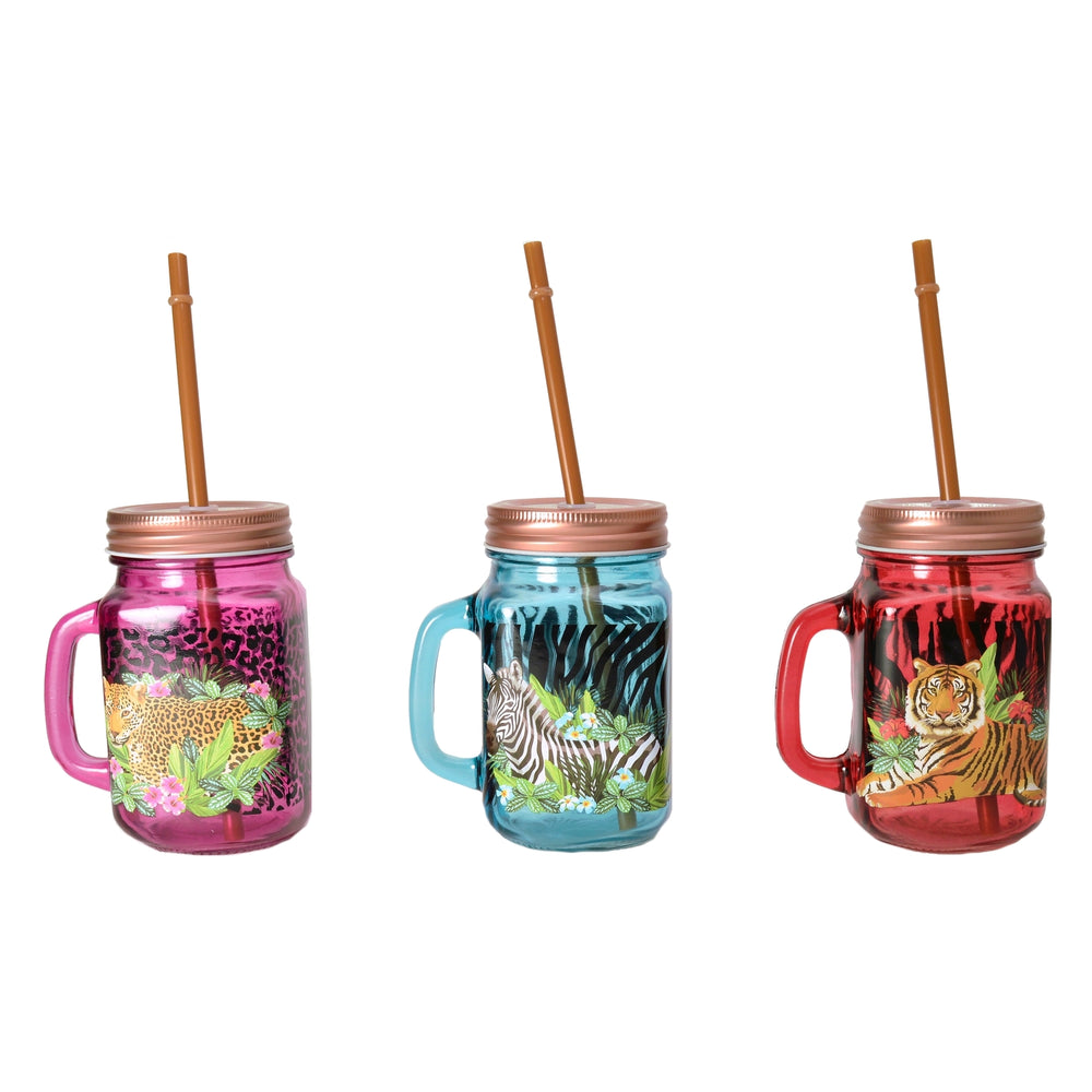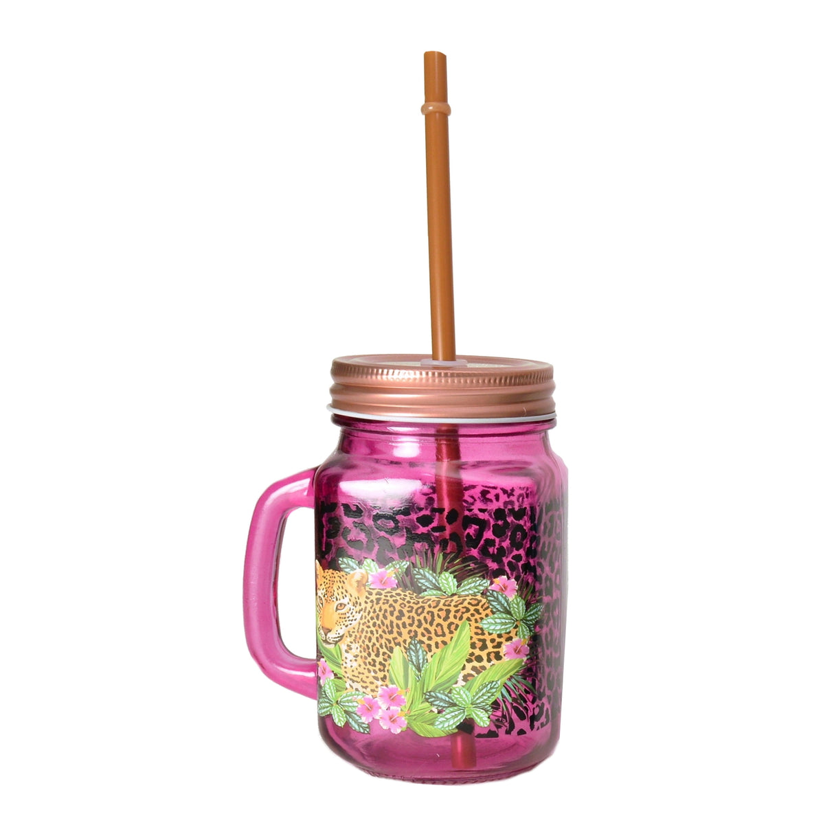 - Lieferumfang: 1x Leopard Glas bestehend aus 1x Trinkglas, 1x Deckel und 1x Strohhalm.
