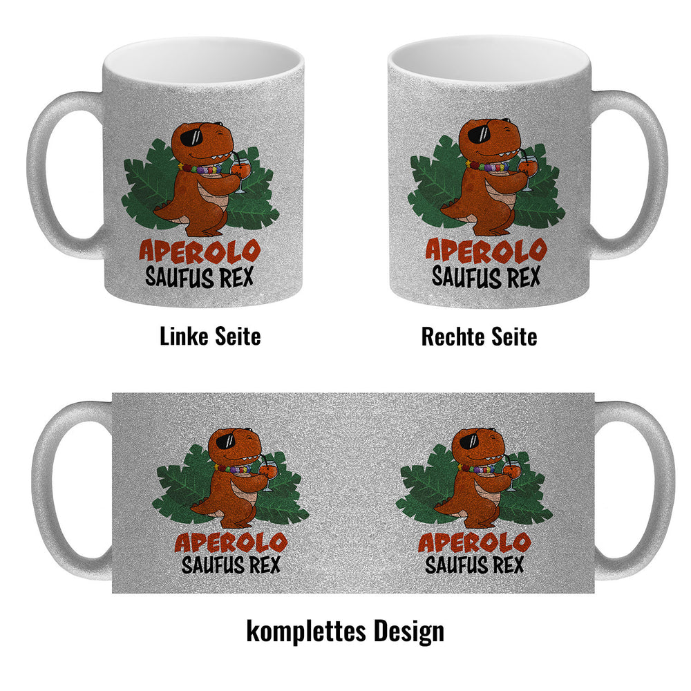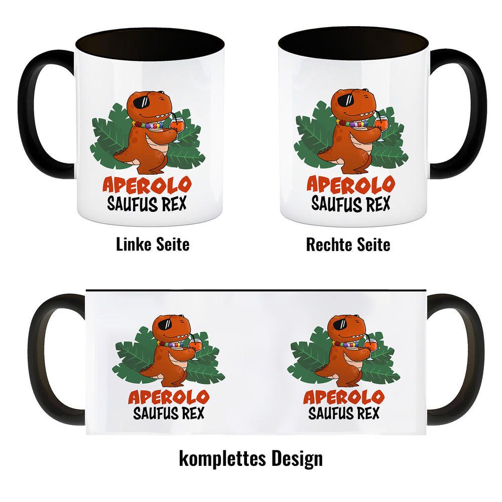 • 1x Aperolo Saufus Rex Kaffeebecher mit Spruch Cocktail T-Rex in der gewählten Ausführung