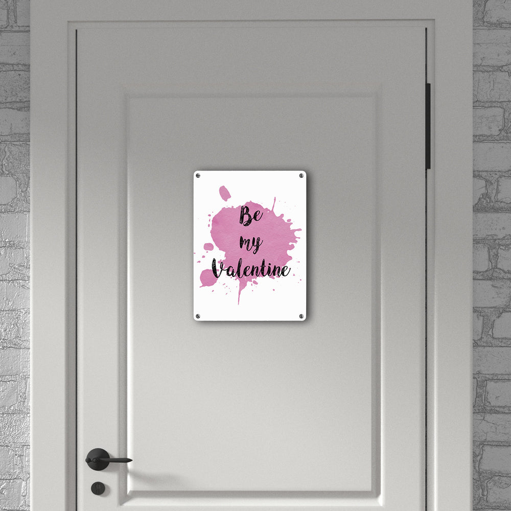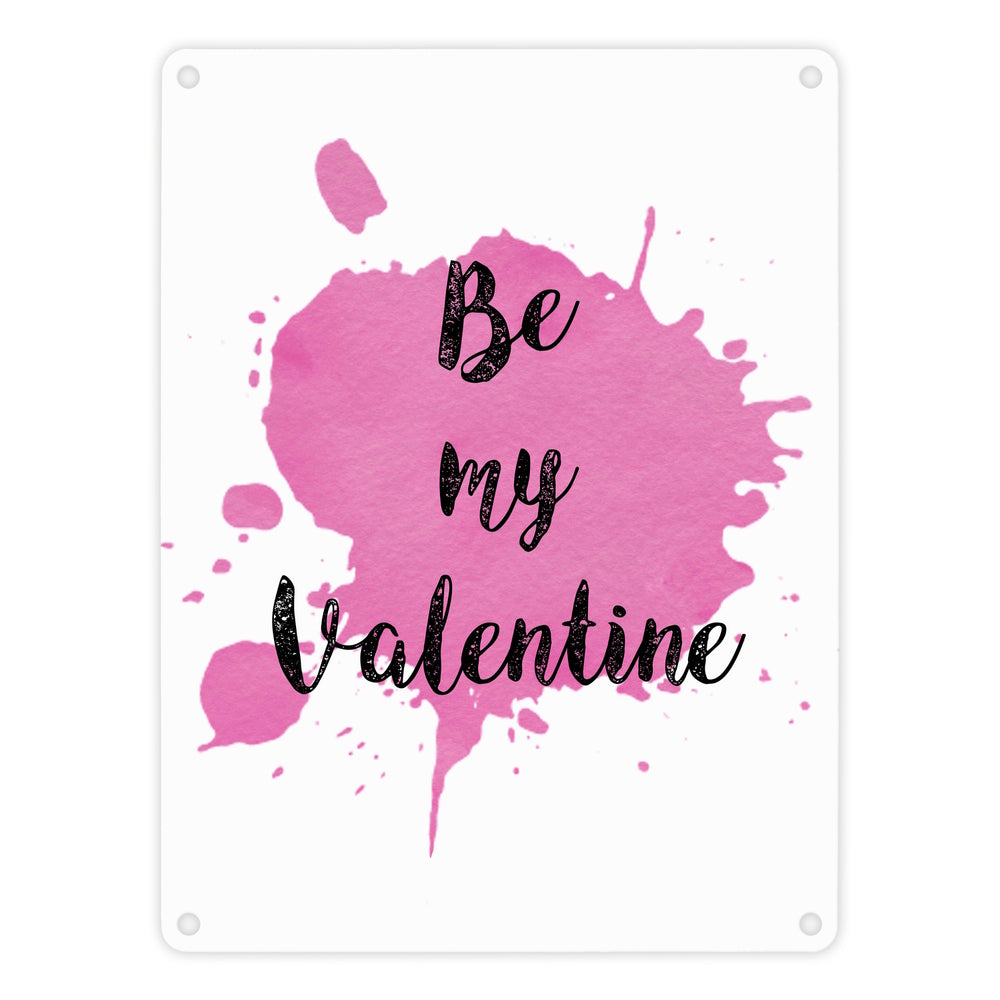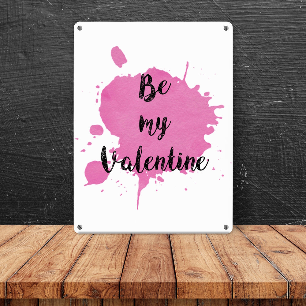 Be my Valentine Metallschild mit rosa Farbkleks