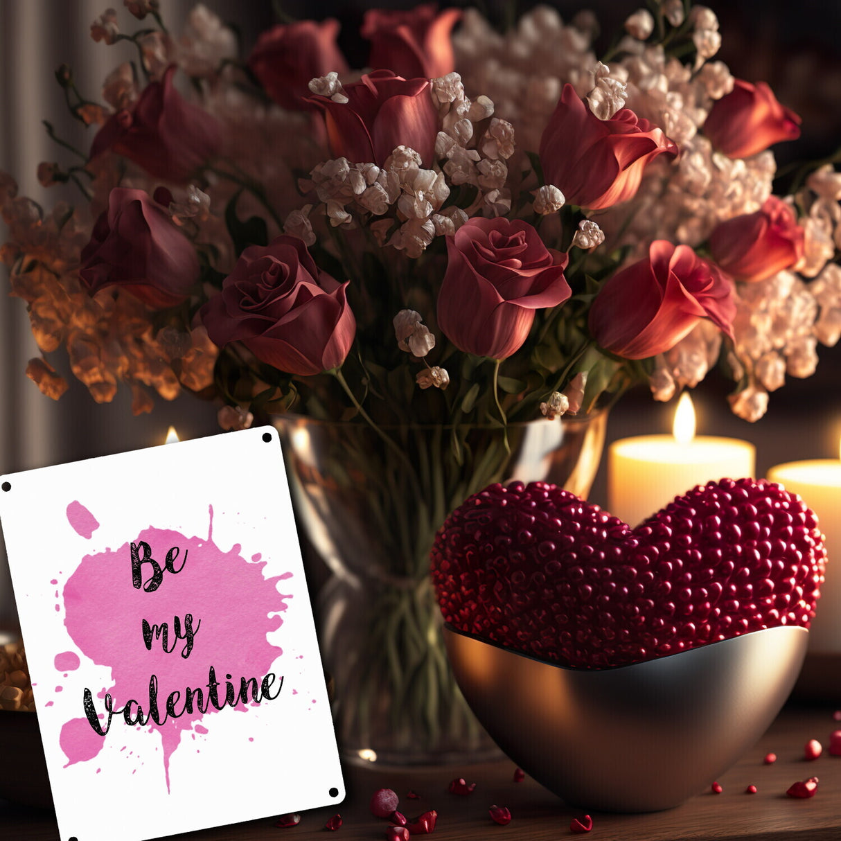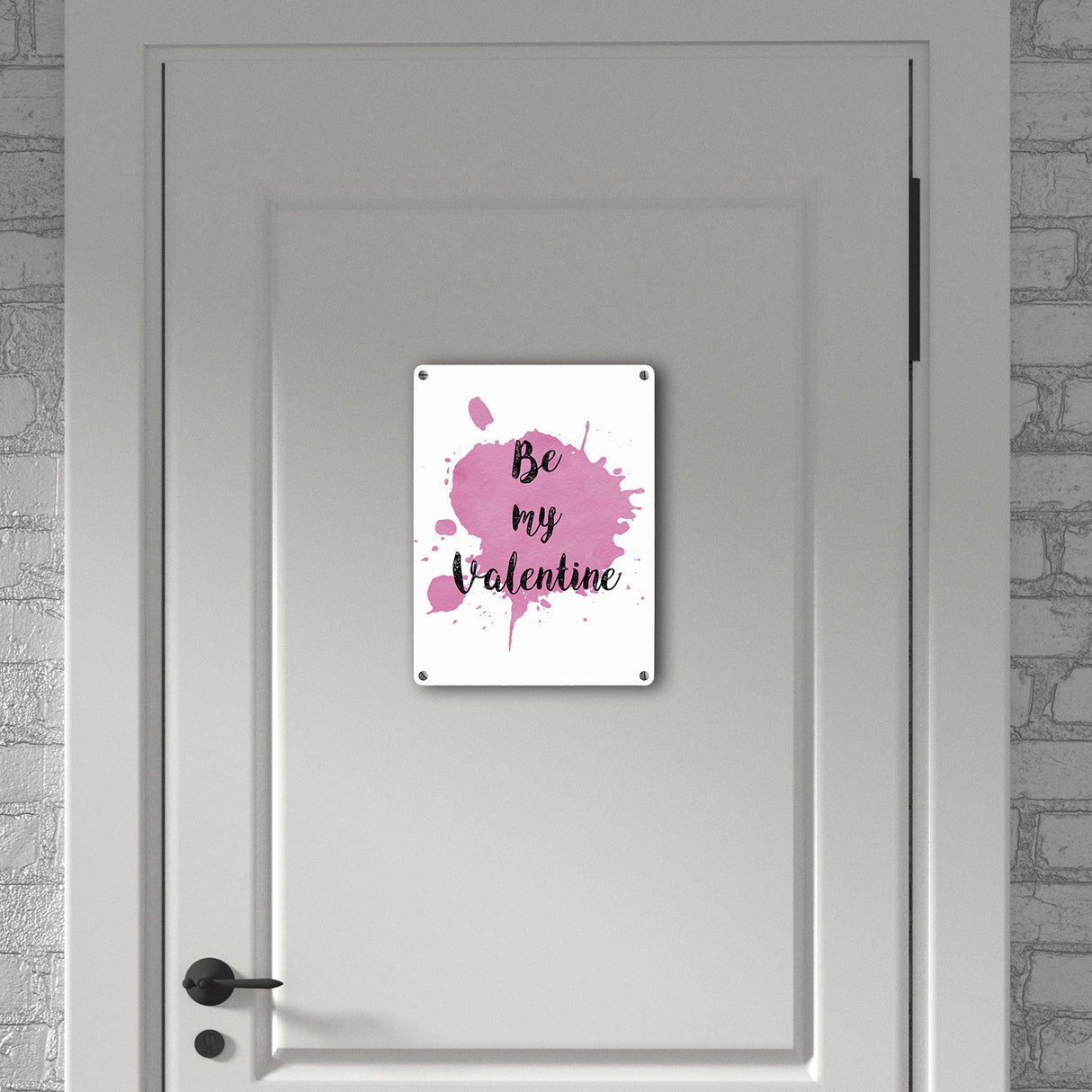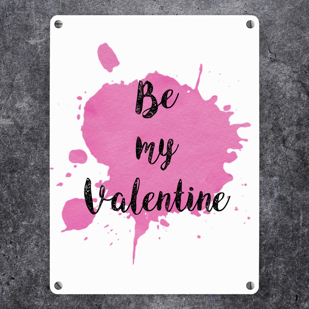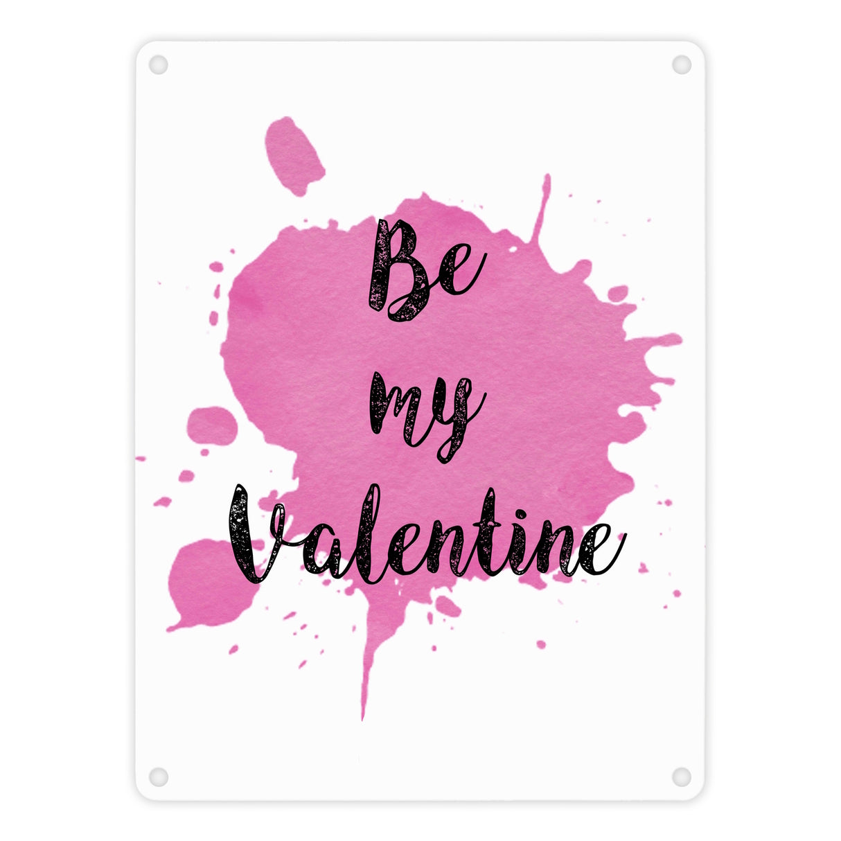 - 1x Be my Valentine Metallschild mit rosa Farbkleks in der gewählten Größe