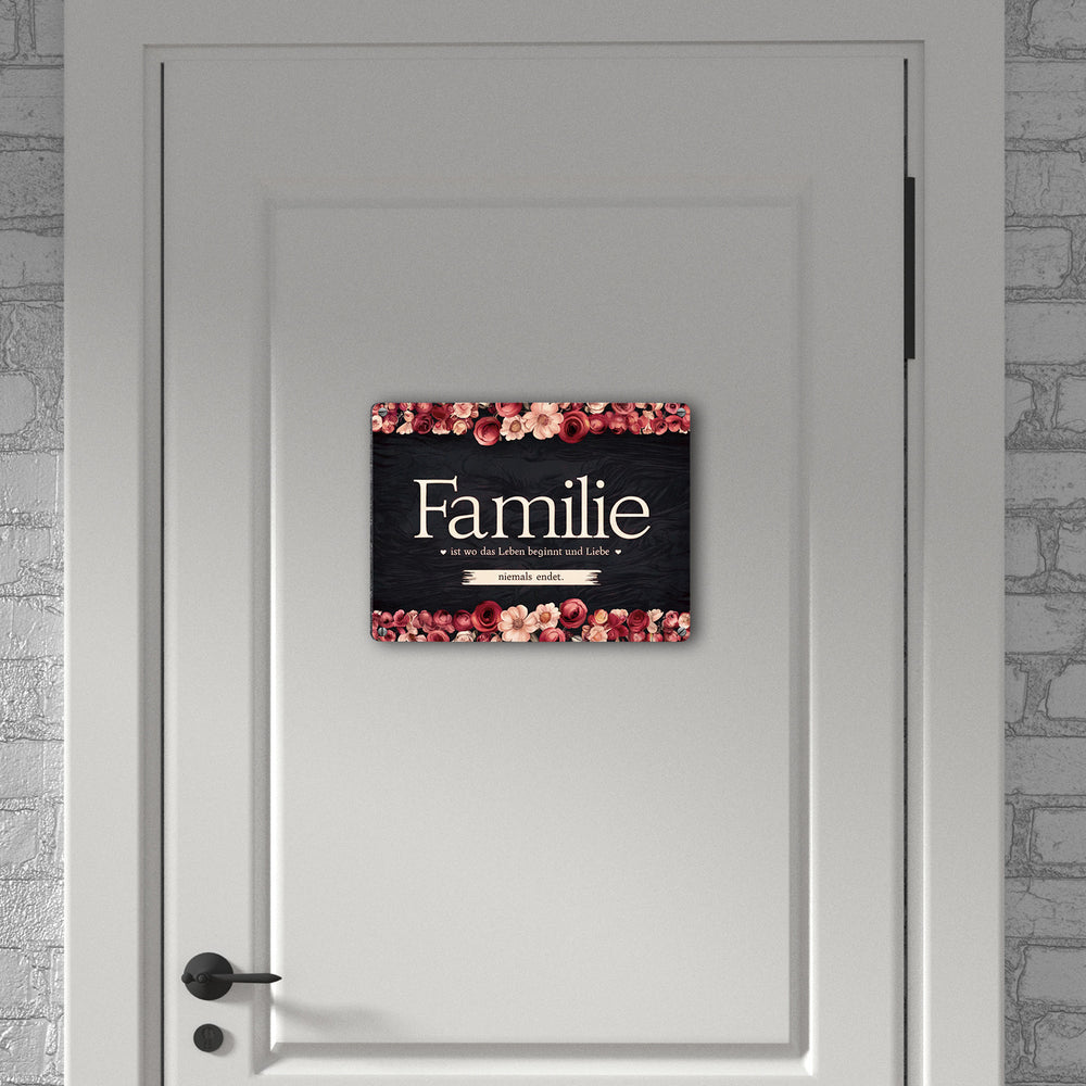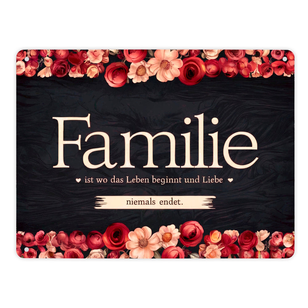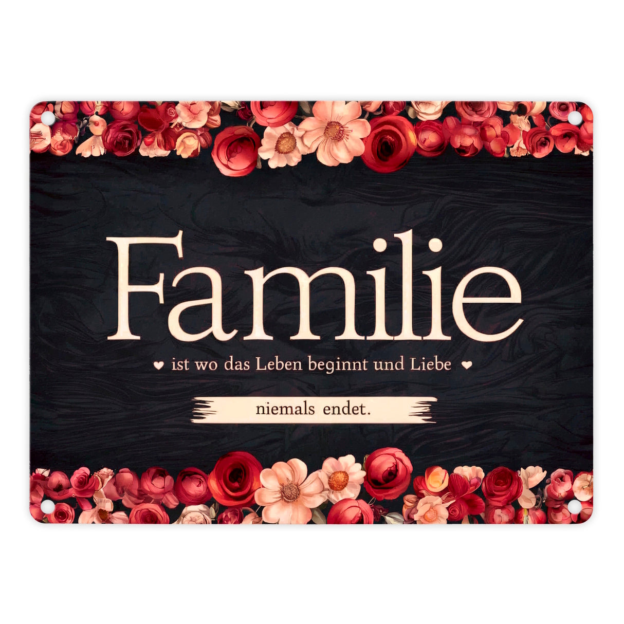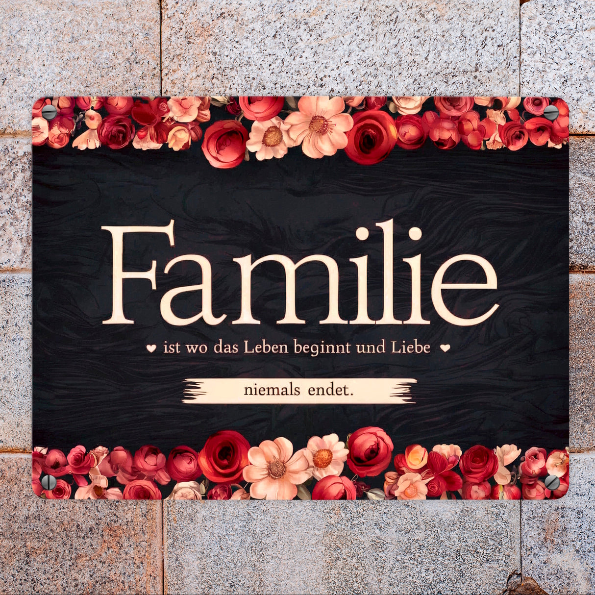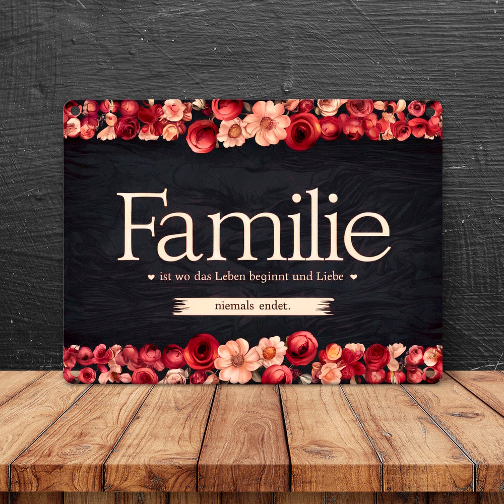 Familie Metallschild in 15x20 cm - Wo Leben beginnt und Liebe niemals endet