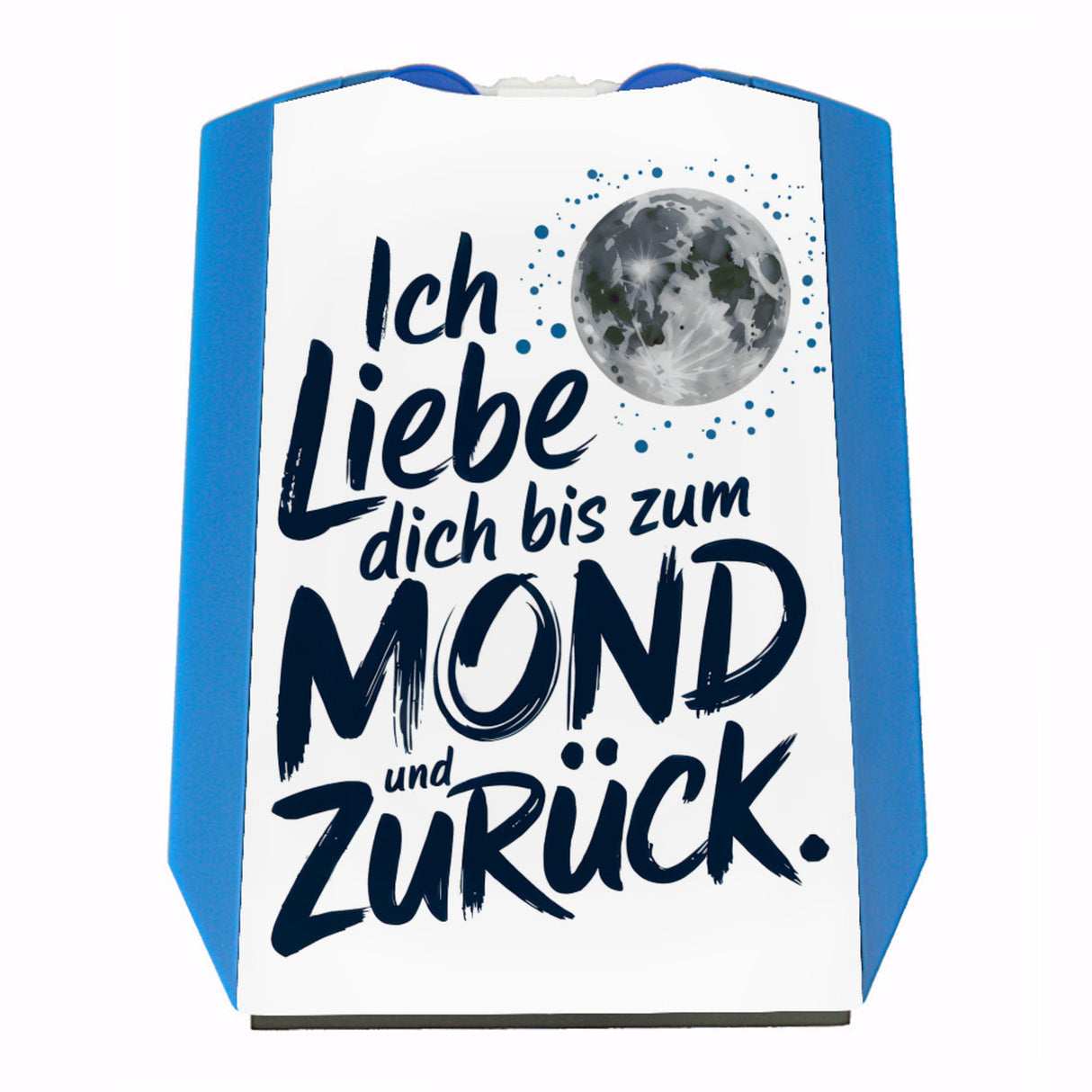 - Der graue Mond und der blaue Text verleihen dieser Parkscheibe einen künstlerischen Touch. Der kontrastreiche Satz "Ich liebe dich bis zum Mond und zurück" springt sofort ins Auge. Die ausgeklügelte Schriftgröße sorgt dafür, dass die Message doppelt zählt. Ein liebevolles Statement für Alltag und besondere Momente!