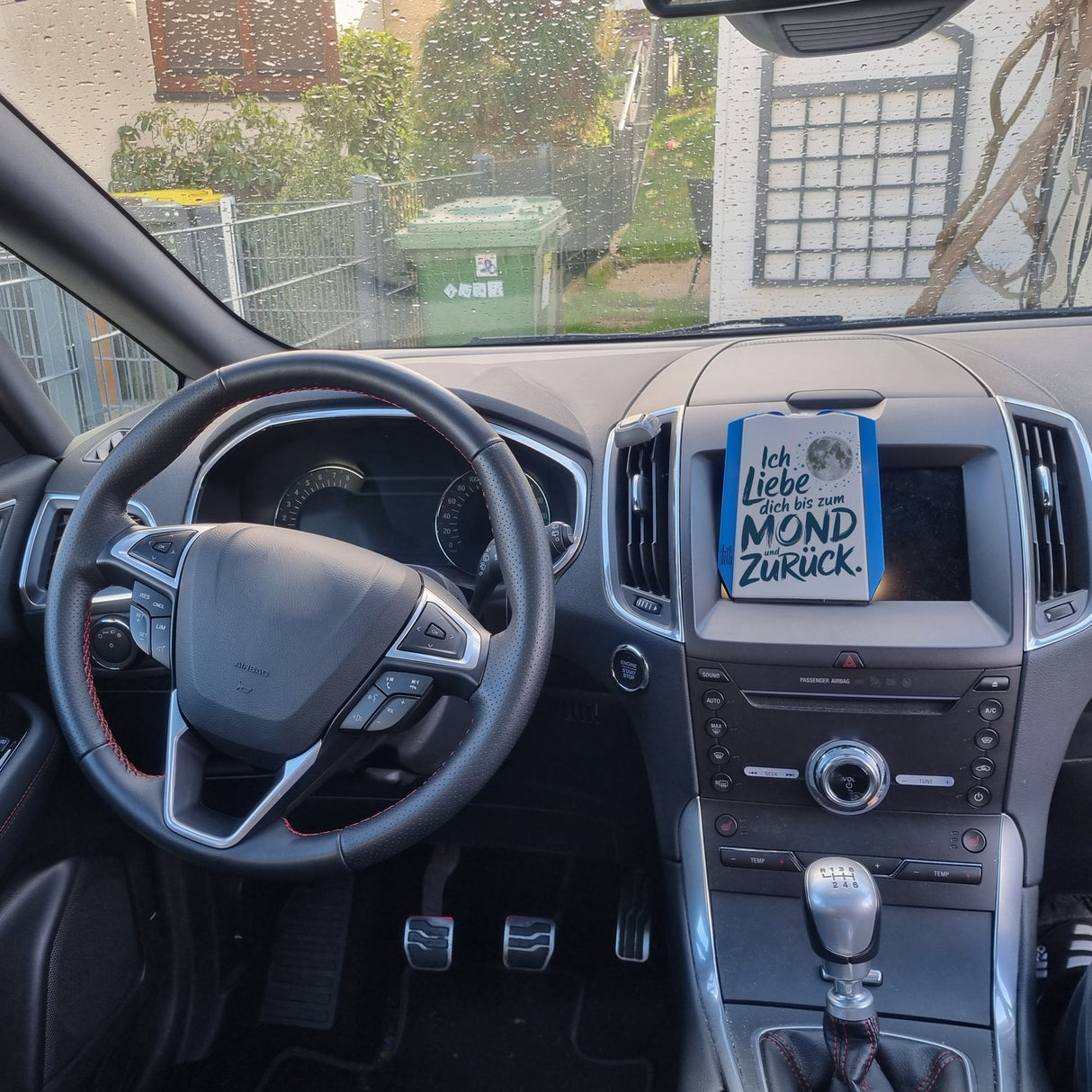 - Lass dein Auto mit dieser Parkscheibe zum Liebesbotschafter werden! Ein grauer Mond, blauer Text und ein Hauch Romantik in deinem Handschuhfach. Perfekt als kleines Liebesgeschenk oder um einfach mal zu sagen: Ich liebe dich auch im Stau. Der Spaß am Parken ist vorprogrammiert!
