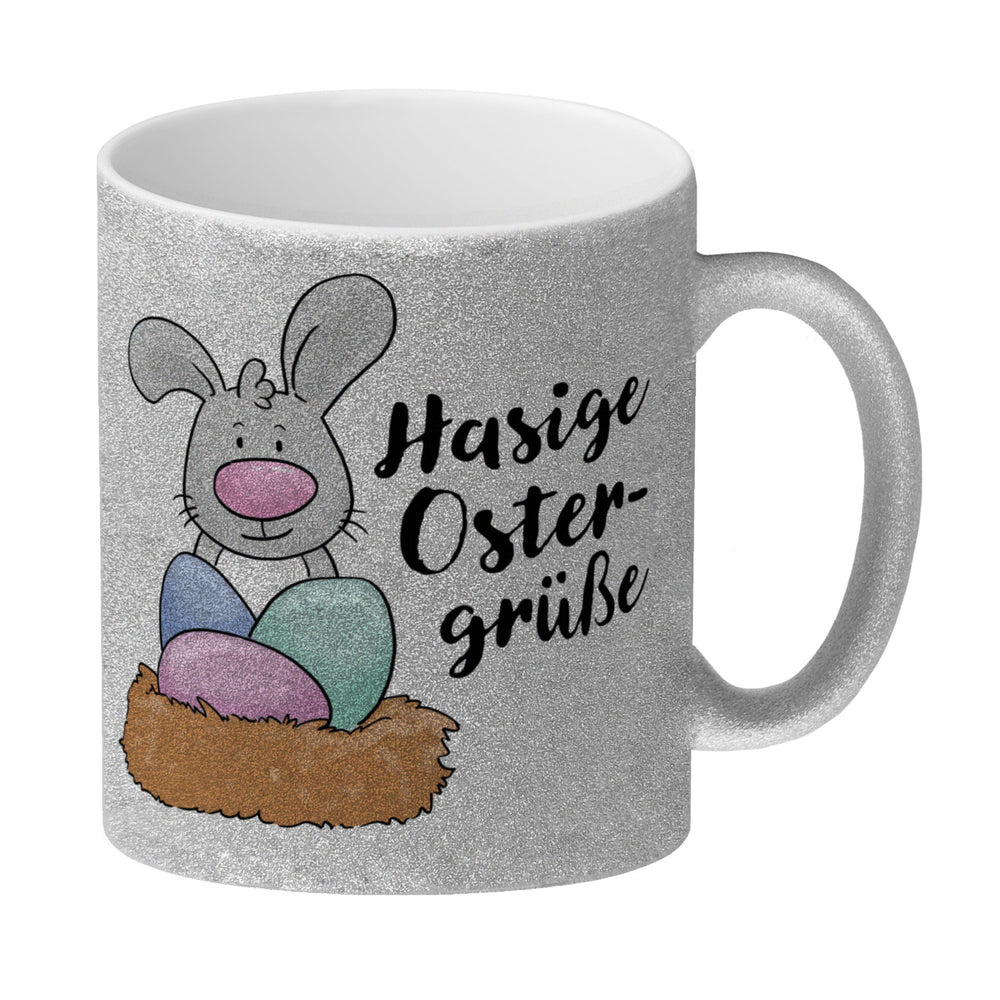• 1x Hasige Ostergrüße Kaffeebecher mit niedlichem Osterhasen in der gewählten Ausführung