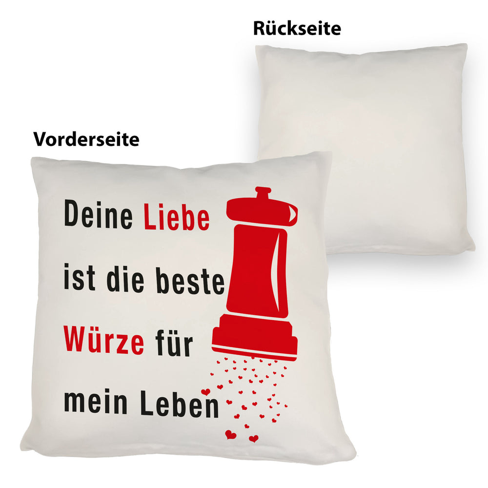 - Dieses bezaubernde Kissen ist das perfekte Accessoire für alle Verliebten da draußen! Mit seinem niedlichen Design zeigt es einen herzförmigen Gewürzstreuer, der kleine Herzchen über dein Leben rieseln lässt. Ein Kissen, das buchstäblich Liebe versprüht und dir ein Lächeln ins Gesicht zaubert!