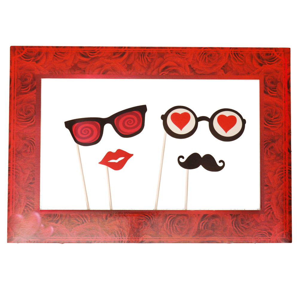 - Lieferumfang: 1x Herz Photo Booth bestehend aus 1x Bilderrahmen und 4x Photo-Accessoire.