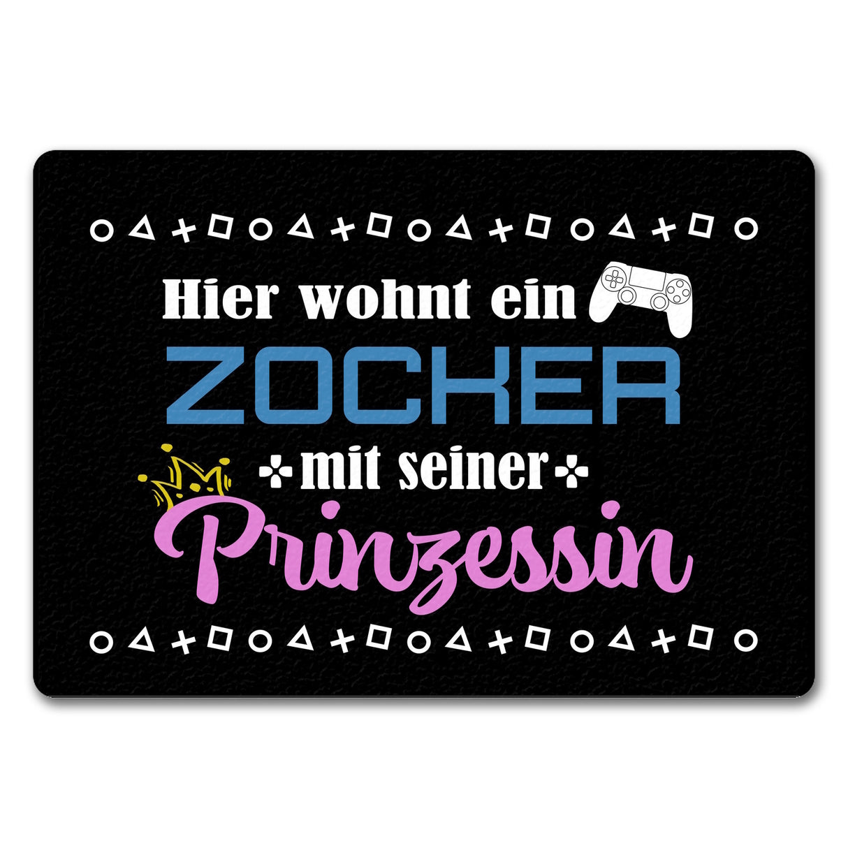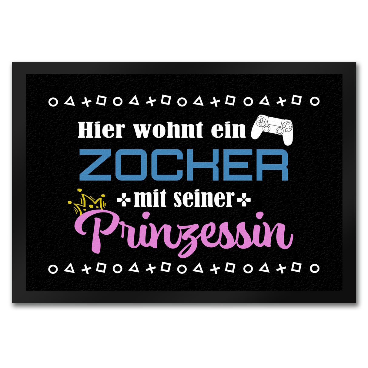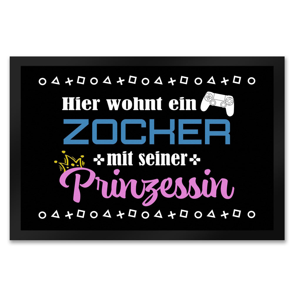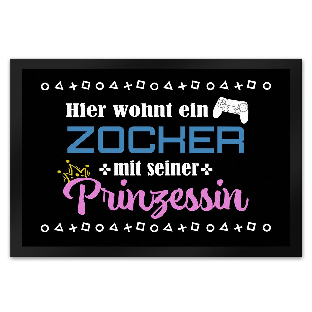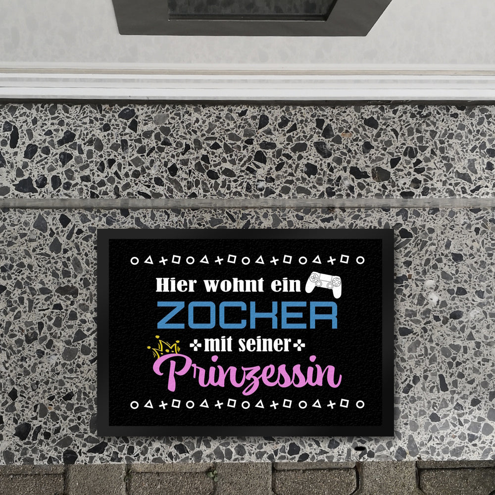 - 1x Hier wohnt ein Zocker mit seiner Prinzessin Fußmatte in der gewählten Größe