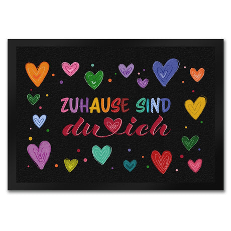 Zuhause sind du und ich Fußmatte mit bunten Herzen