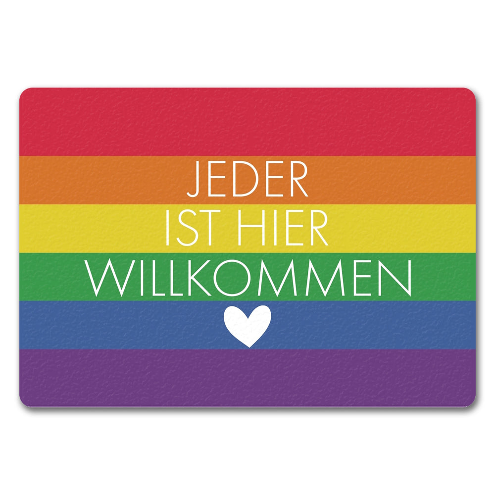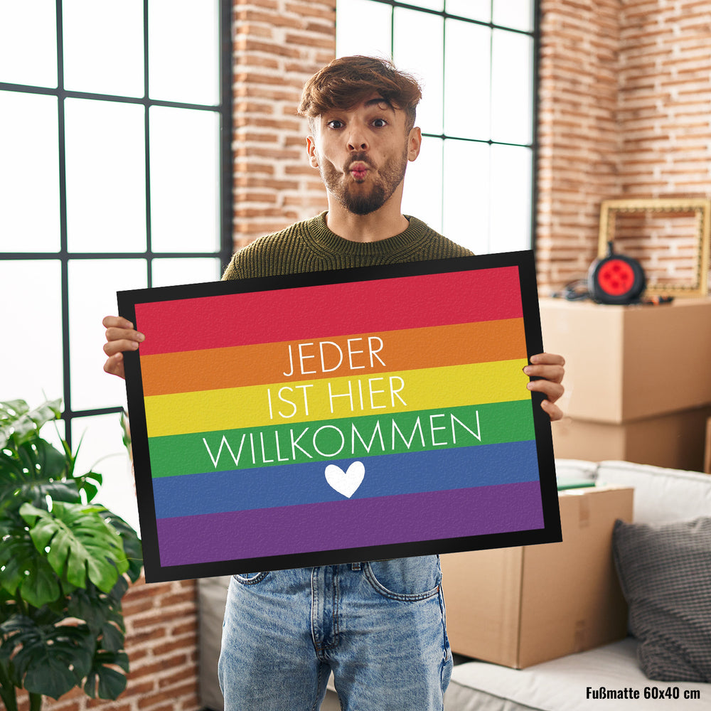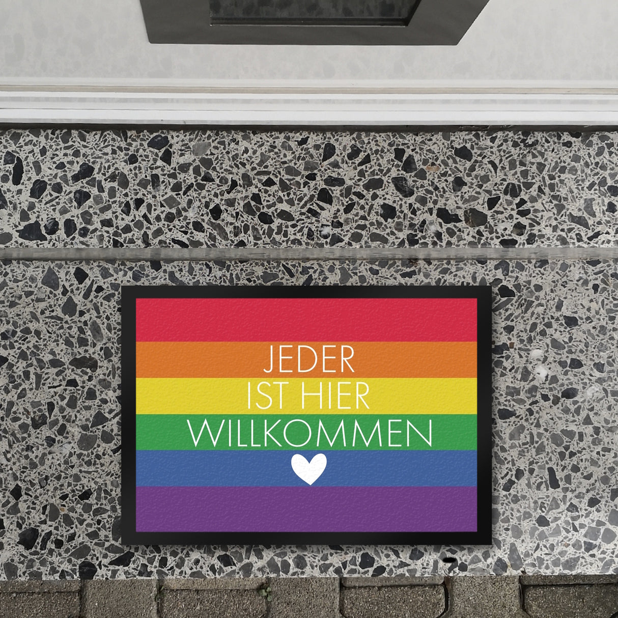 Regenbogen Fußmatte mit Spruch - Jeder ist hier Willkommen LGBTQ