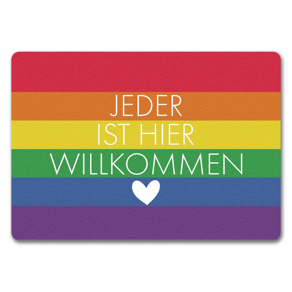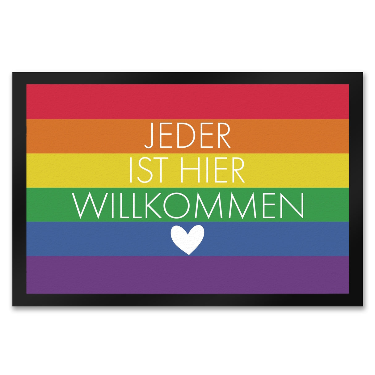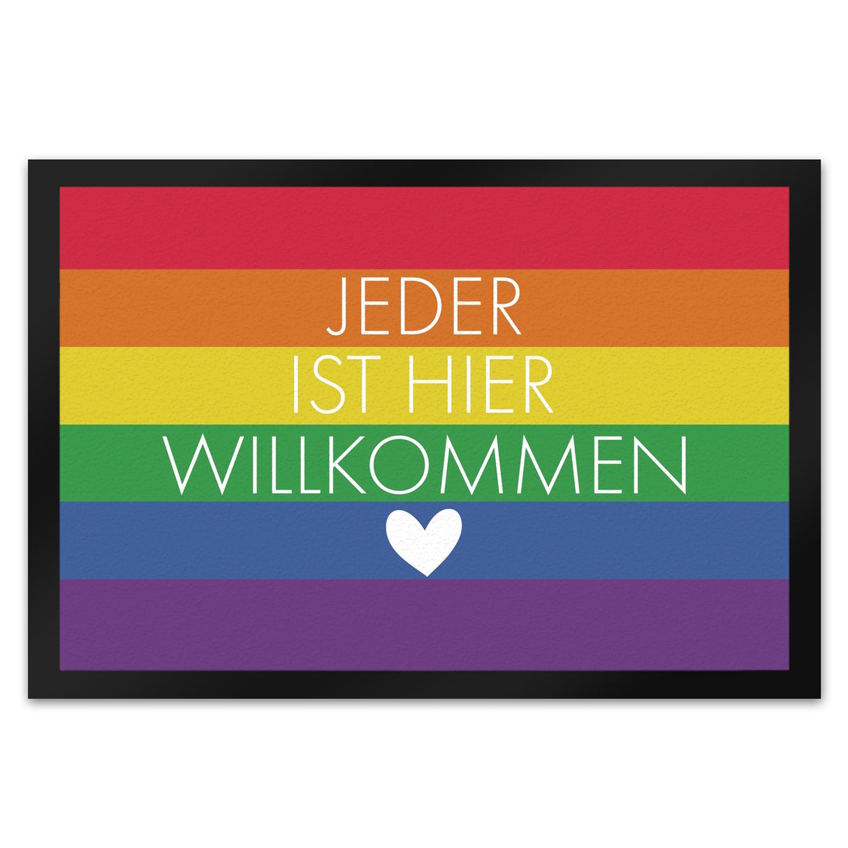 Regenbogen Fußmatte mit Spruch - Jeder ist hier Willkommen LGBTQ