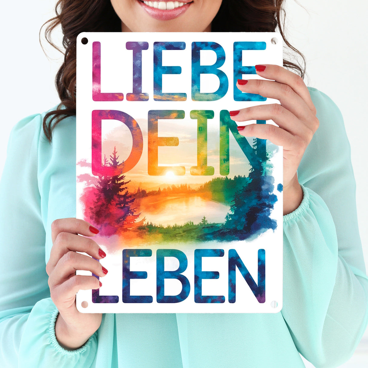 - 1x Liebe dein Leben Metallschild in 15x20 cm Aquarell Design in der gewählten Größe