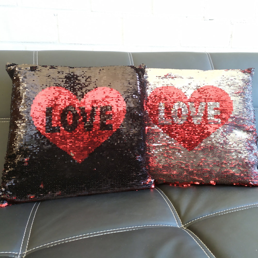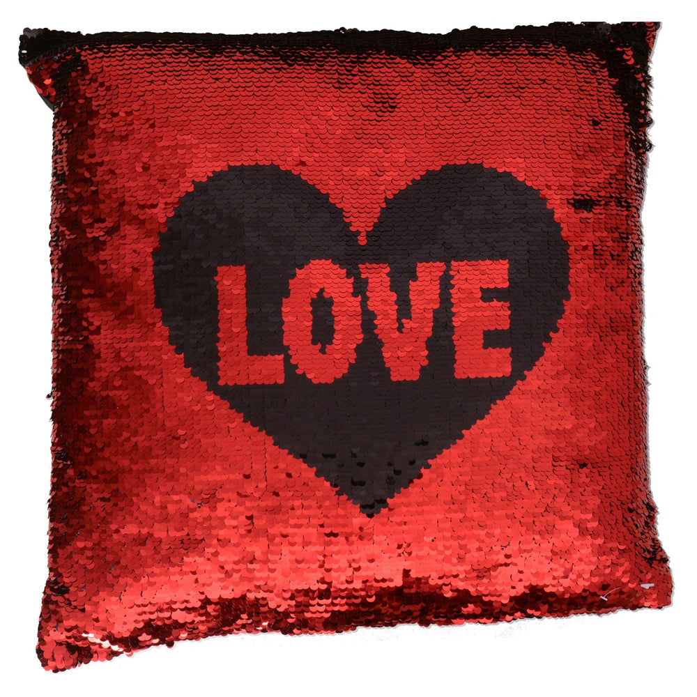 Das Love Pailletten Kissen kann zu unterschiedlichen Anlässen verschenkt werden bei denen die Liebe im Vordergrund steht. Polyester. | Mit feuchtem Tuch abwischen.