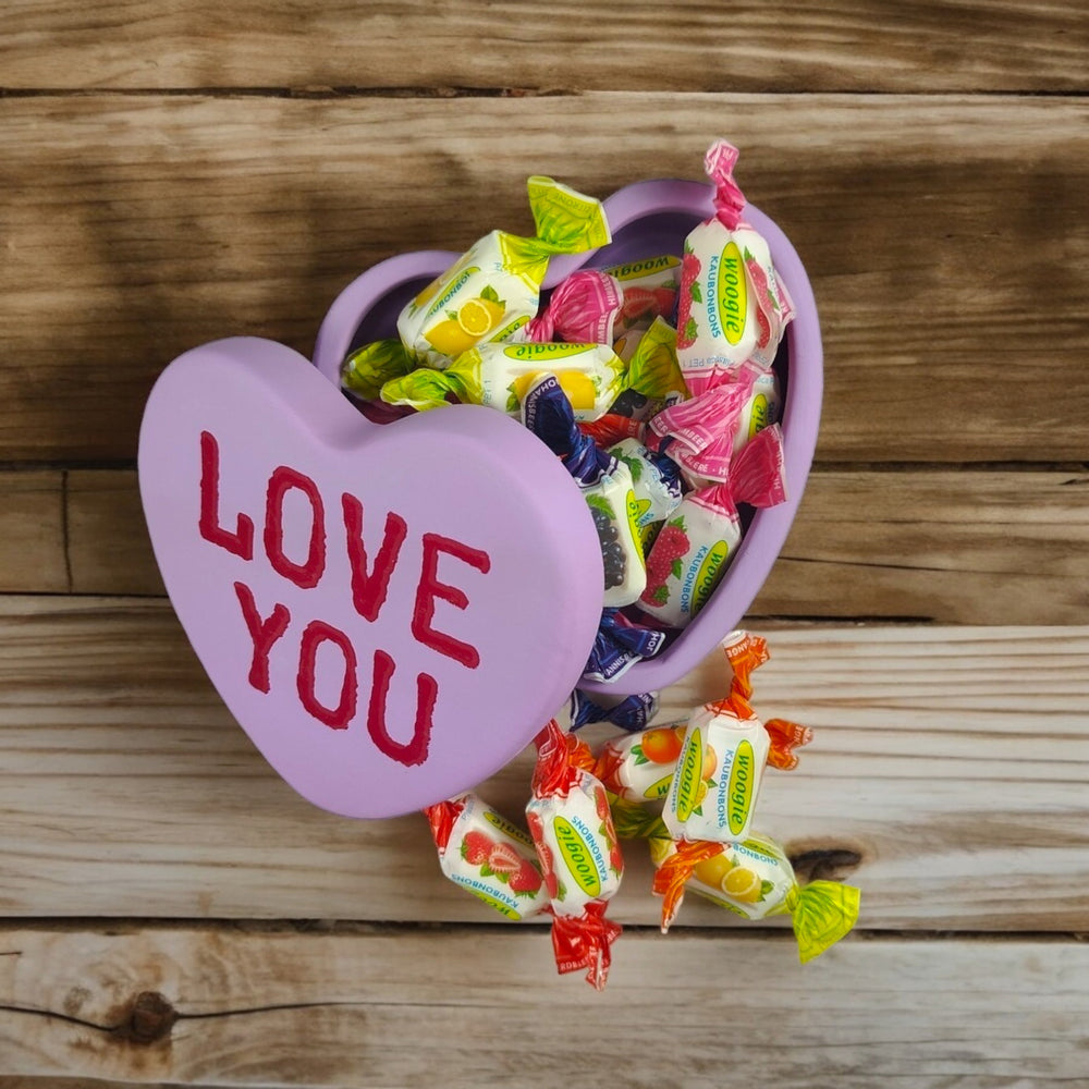 • Verliebt im Detail: Diese herzförmige Dolomitbox erstrahlt in lieblichem Lila und trägt stolz den Schriftzug "LOVE YOU". Ein echter Hingucker, der die Botschaft klar übermittelt - Dein Schatz wird vor Verzückung schmelzen!
