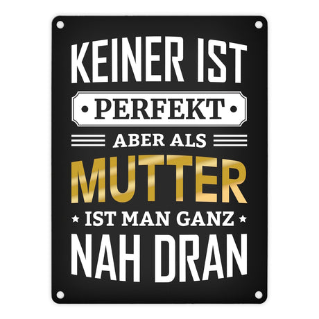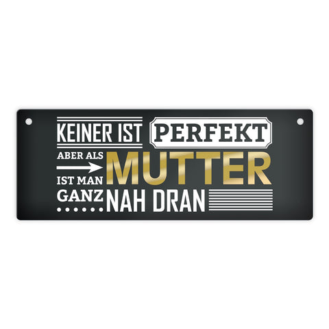 Metallschild mit Spruch: Keiner ist perfekt, aber als Mutter ist man ganz nah dran