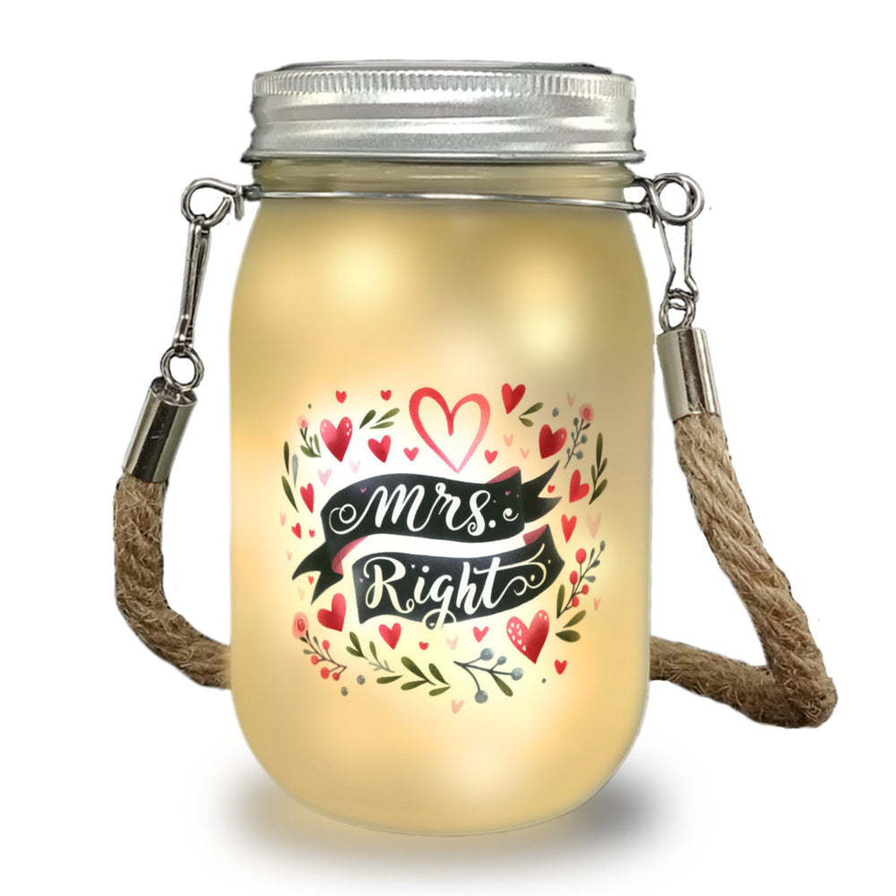 - Mit dem "Mrs Right Solarlicht", dem romantischen Leuchtfeuer der Liebe, zieht ein Funkeln ins Herz. Umgeben von zarten Herzen verkündet es stolz: "Mrs. Right" - für die Frau, die immer ins Schwarze trifft!