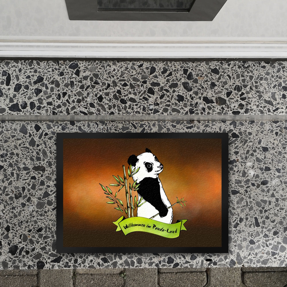 Pandabär Fußmatte Willkommen im Panda-Land in braun