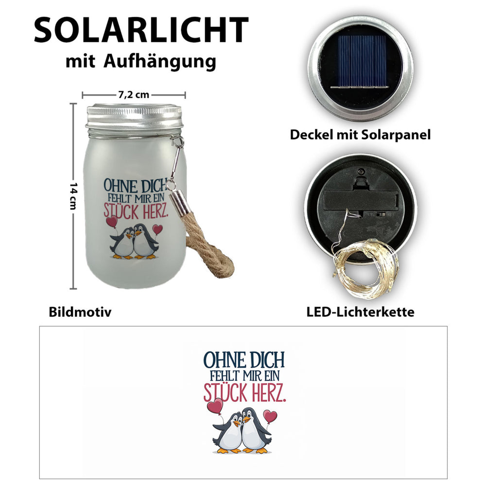 • Lieferumfang: 1x Pinguine Ohne dich fehlt ein Stück Herz Solarlicht