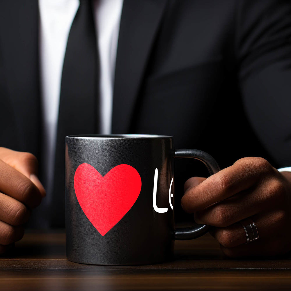 - Das Highlight dieser Tasse ist das auffällige, rote Herz, das vor dem tiefschwarzen Hintergrund richtig hervorsticht. Die weiße Innenfläche bietet einen coolen Kontrast und macht jede Kaffeepause zu einem kleinen Kunstwerk – und das jeden Morgen!