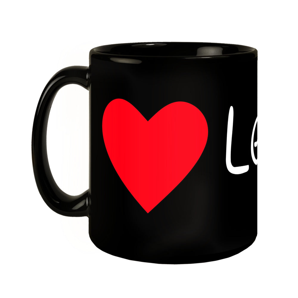 Schwarze Tasse Leipzig mit rotem Herz - Romantische KaffeeTasse