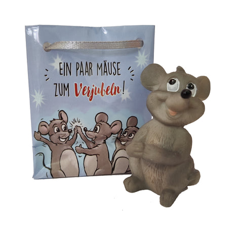 1x Ein paar Mäuse zum Verjubeln Geldgeschenkbox bestehend aus 1x Geschenktüte und 1x Maus.