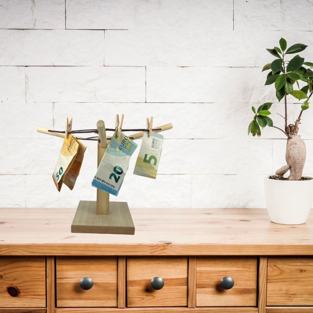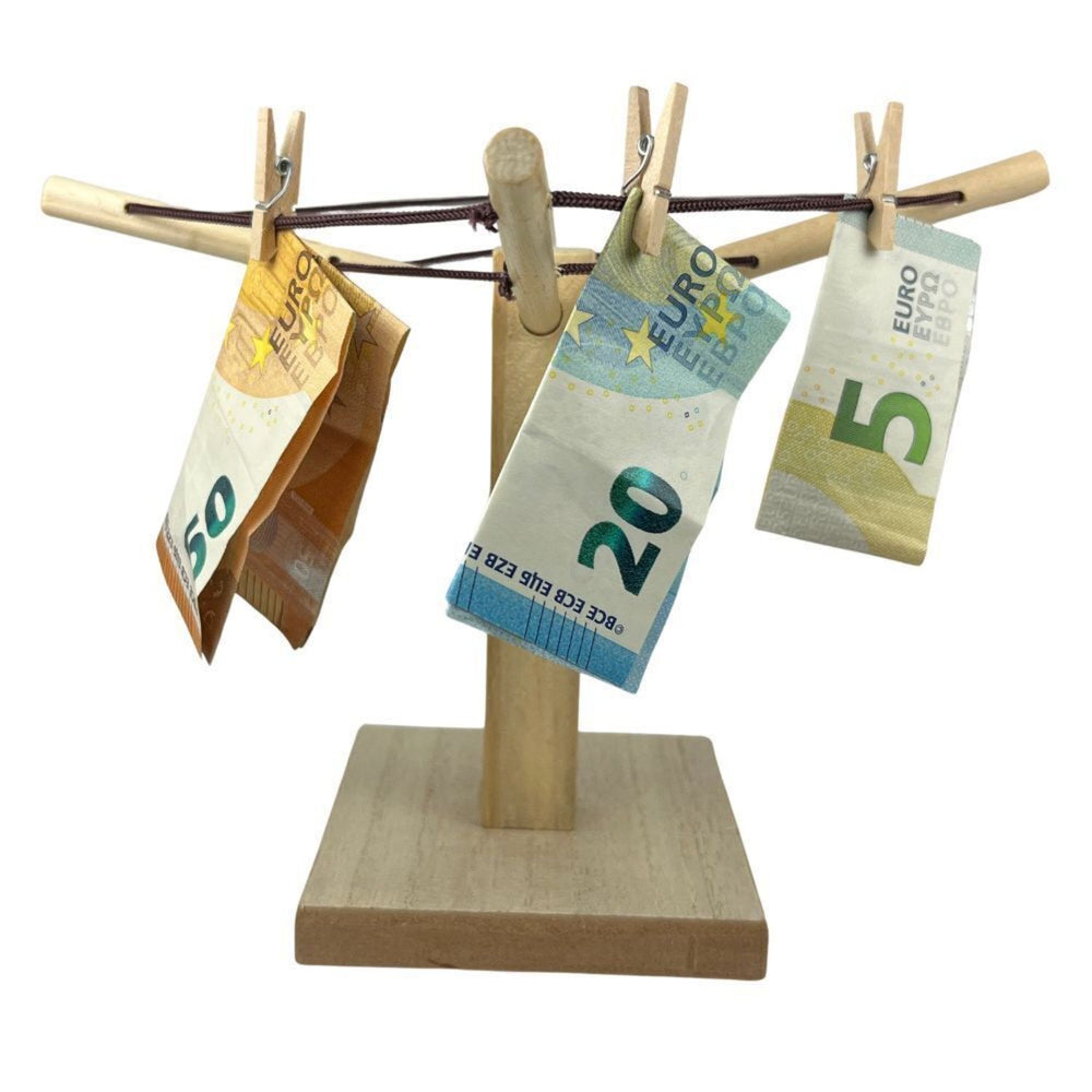 Gewaschenes Geld muss immer erst trocknen! Material: Holz