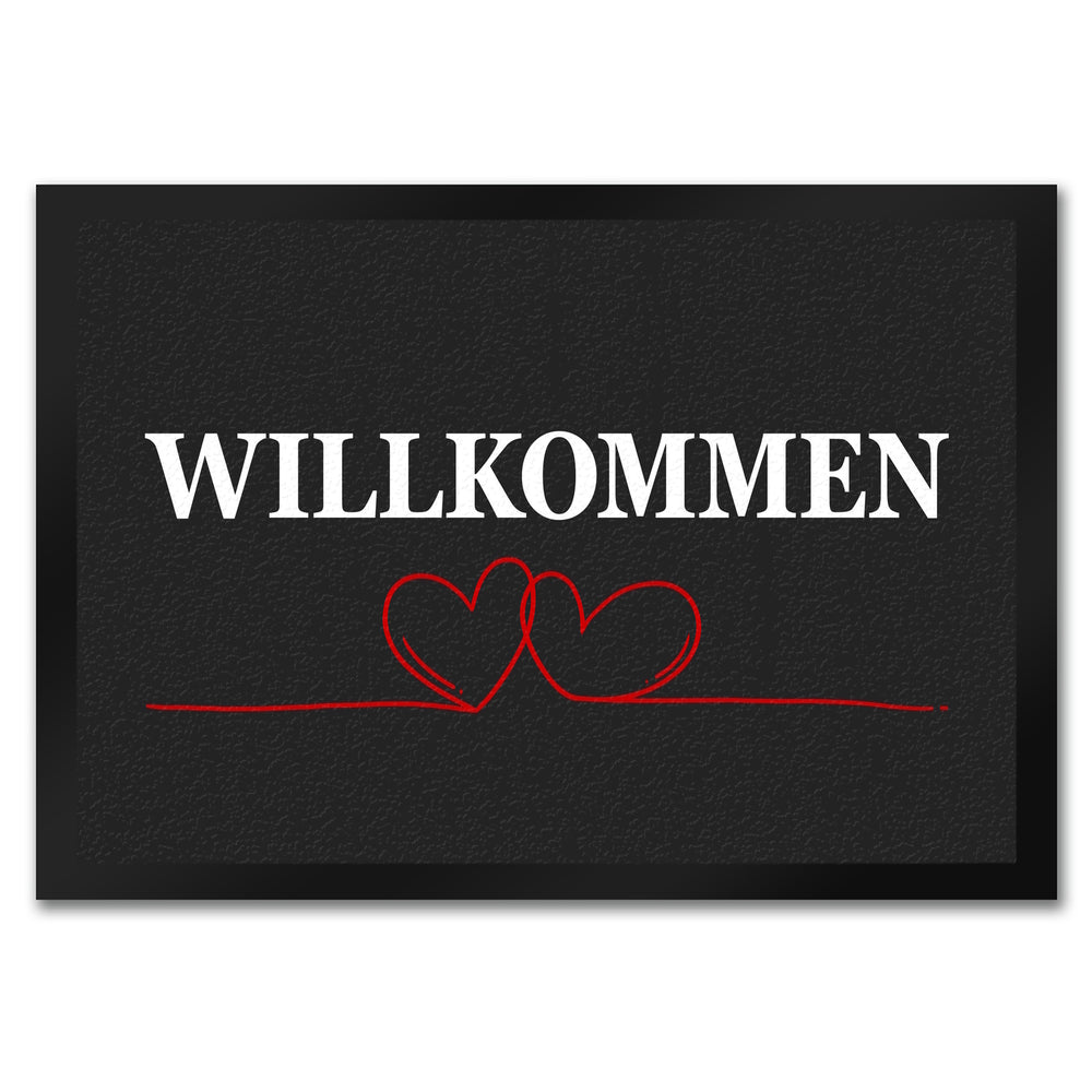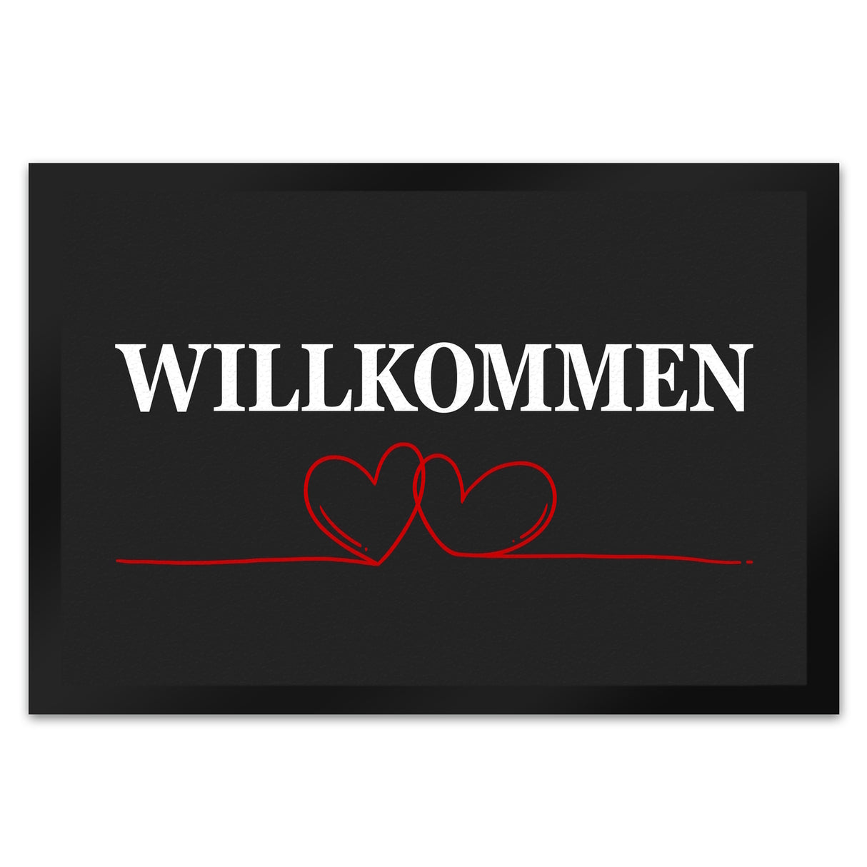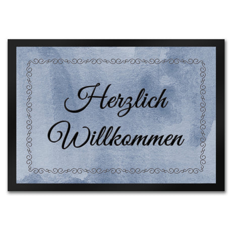 Herzlich Willkommen Fußmatte in 35x50 cm mit verschnörkeltem Rahmen