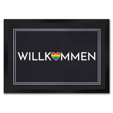 Willkommen Fußmatte mit buntem Regenbogen-Herz