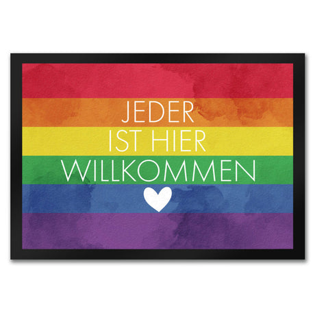 Jeder ist hier willkommen Fußmatte mit Regenbogenfahne