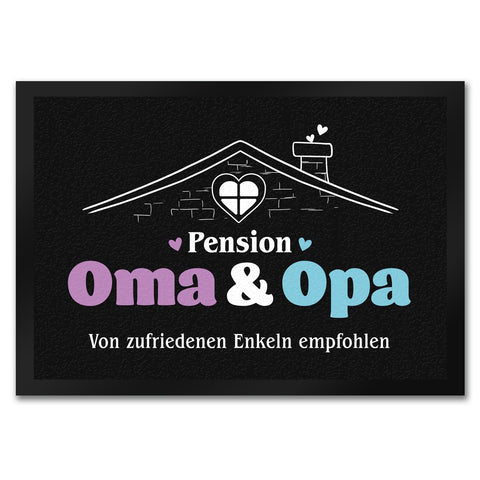 Pension Oma & Opa Fußmatte in 35x50 cm mit Spruch Von zufriedenen Enkeln empfohlen