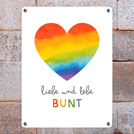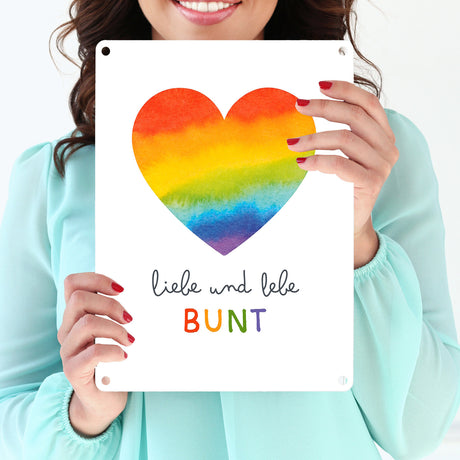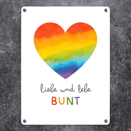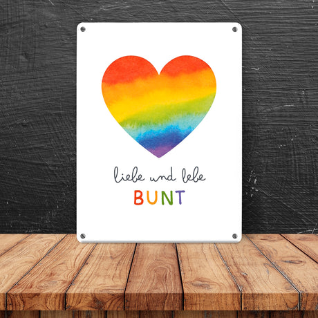 Ab €8,95Grundpreis /Nicht verfügbarAuf LagerRegenbogenherz Metallschild in 15x20 cm mit Spruch Liebe und lebe bunt