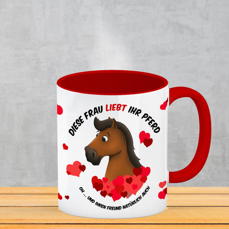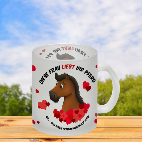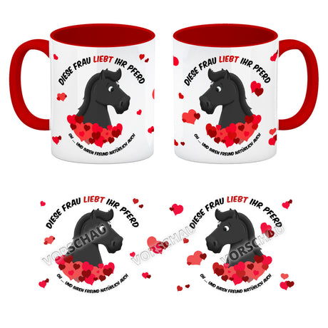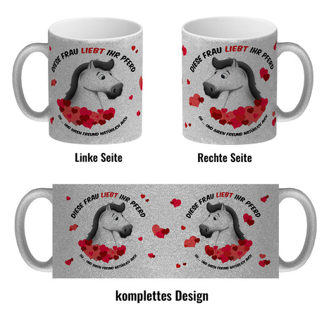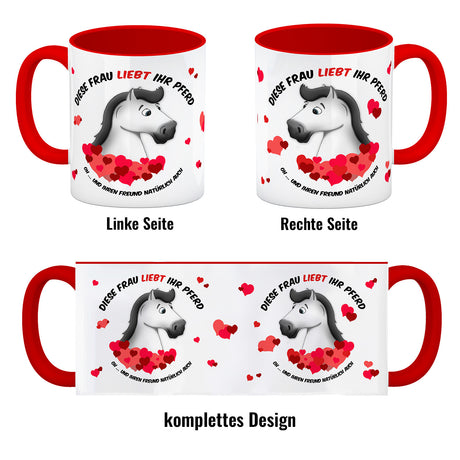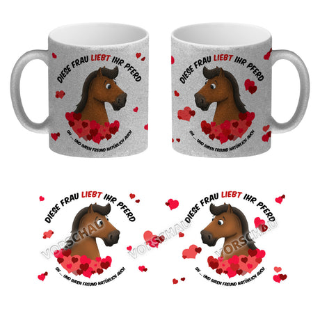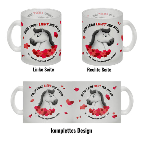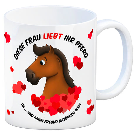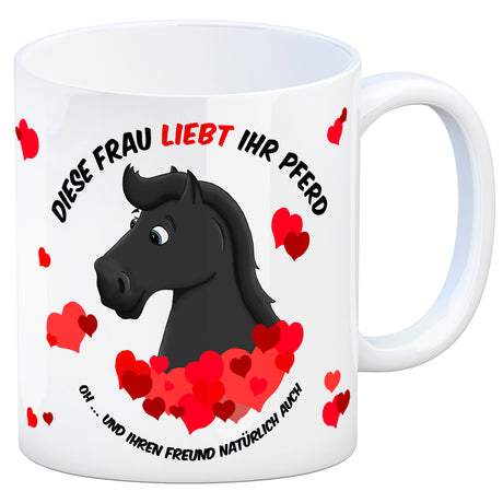Ab €8,95Grundpreis /Nicht verfügbarAuf LagerKaffeebecher mit weißes Pferd Motiv und Spruch: Diese Frau liebt ihr Pferd. Oh ...