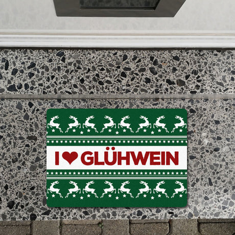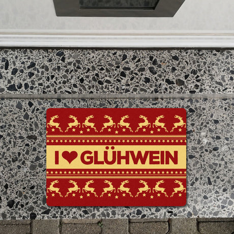 I love Glühwein Fußmatte ohne Rand in rot mit Weihnachtsmuster Motiv