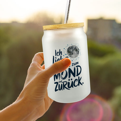 €12,95Grundpreis /Nicht verfügbar Ich liebe dich bis zum Mond und zurück Trinkglas mit Bambusdeckel