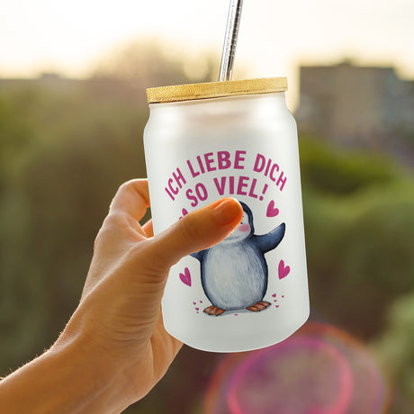 €9,95Grundpreis /Nicht verfügbarAuf LagerPinguin ICH LIEBE DICH Trinkglas mit Bambusdeckel für Tierfreunde
