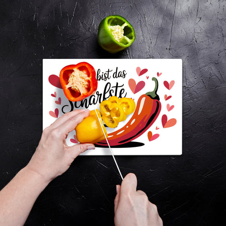 Chilischote Schneidebrett aus Glas - Du bist das Schärfste für mich