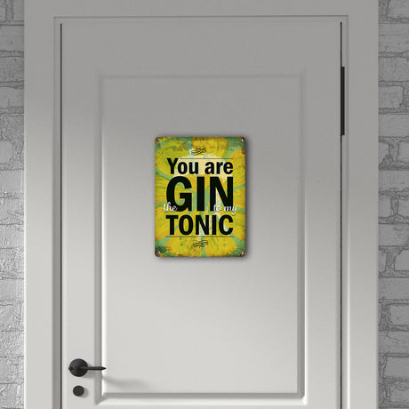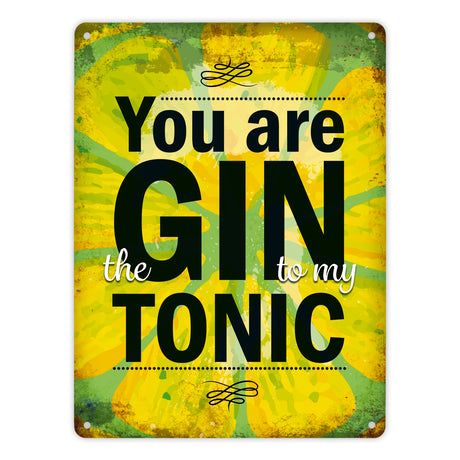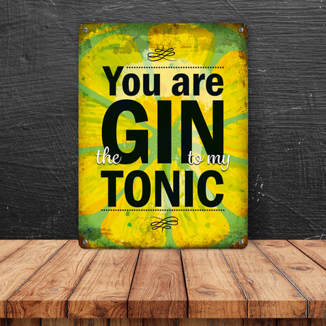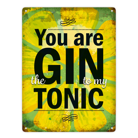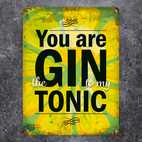 Metallschild mit Gin Tonic Motiv und Spruch: Gin to my Tonic