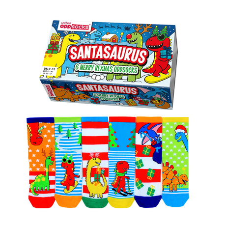 Santasaurus Weihnachten Dino Oddsocks Socken in 27-30 im 6er Set