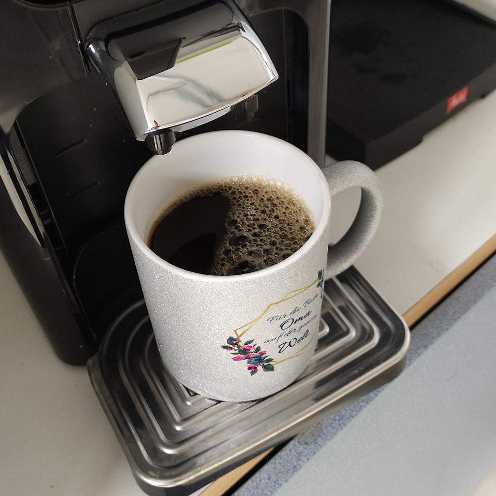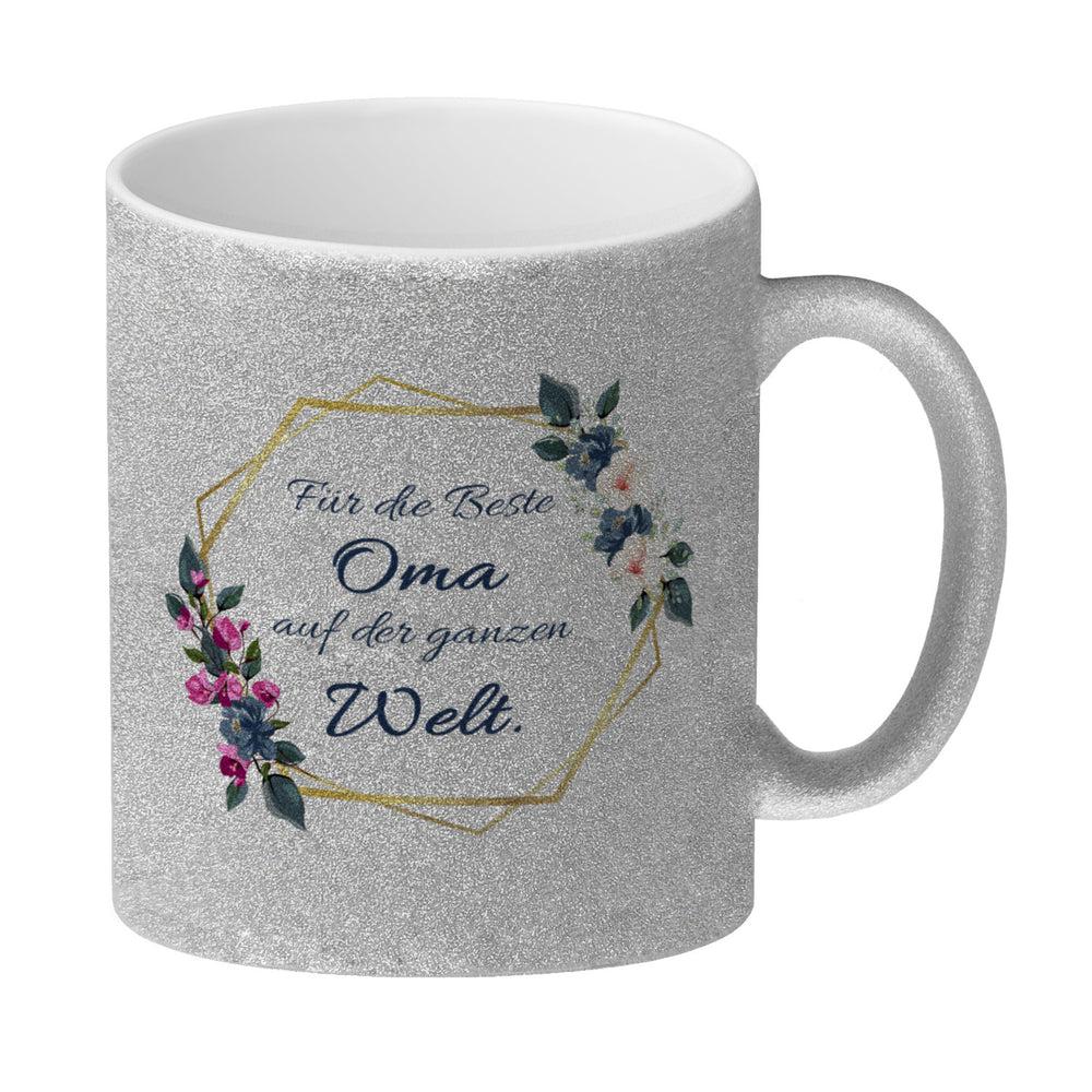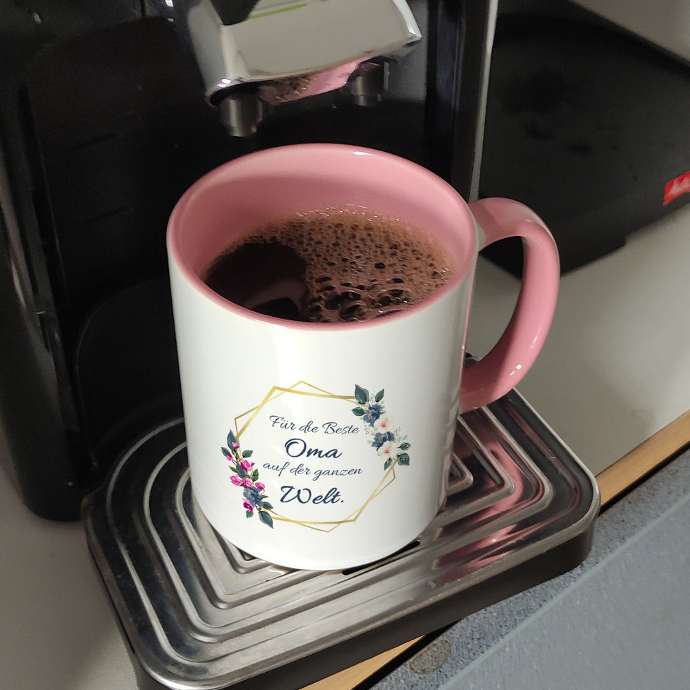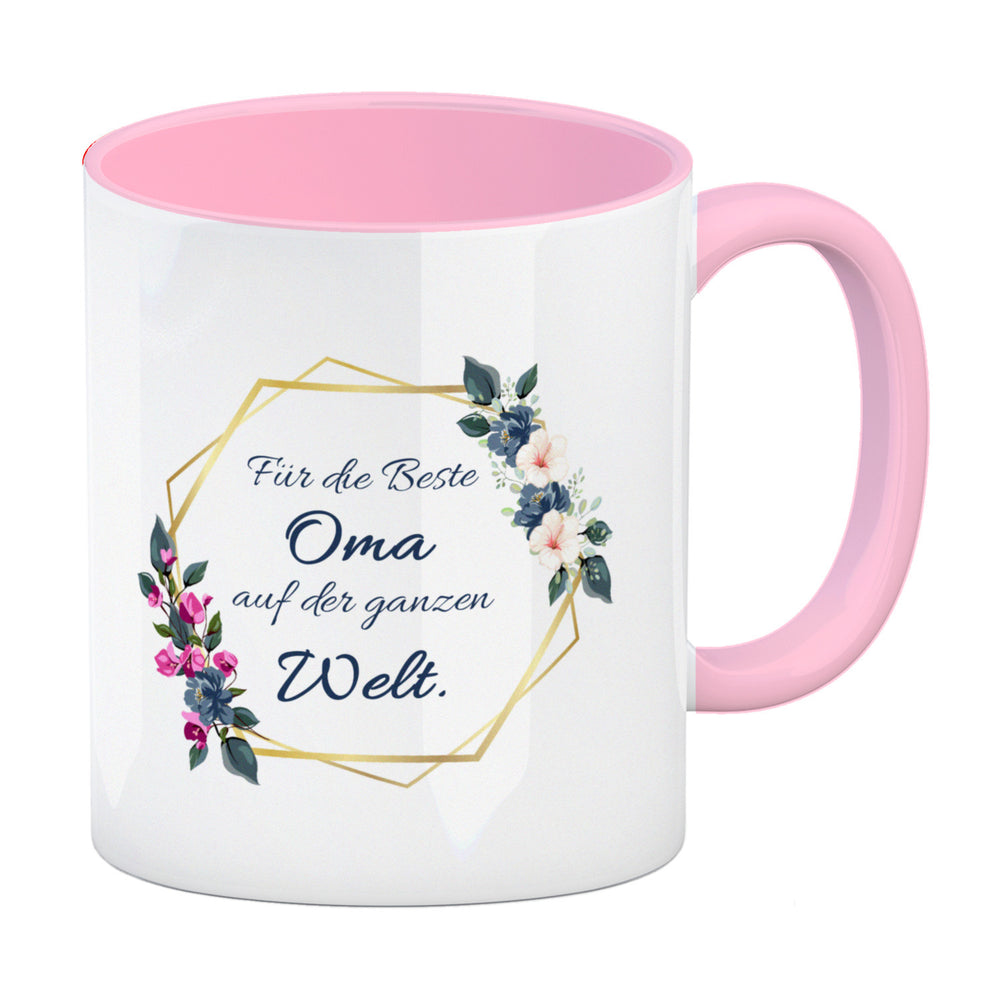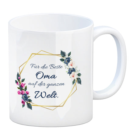 Für die Beste Oma auf der ganzen Welt Kaffeebecher mit Goldrahmen und Blumen