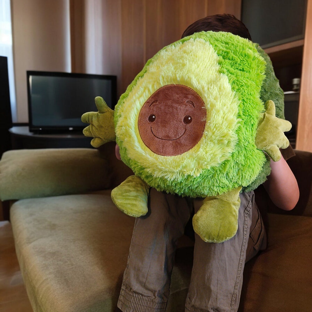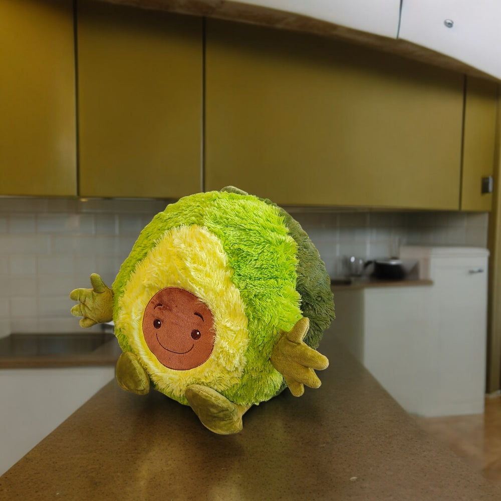 - Als witziges Avocado Plüschtier zaubert es ein Lächeln auf jedes Gesicht. Mit seinen knuffigen Ärmchen und Beinchen wirkt es, als würde es zum Kuschel-Dance auffordern. Einfach Hände reinstecken und die Gemütlichkeit genießen!