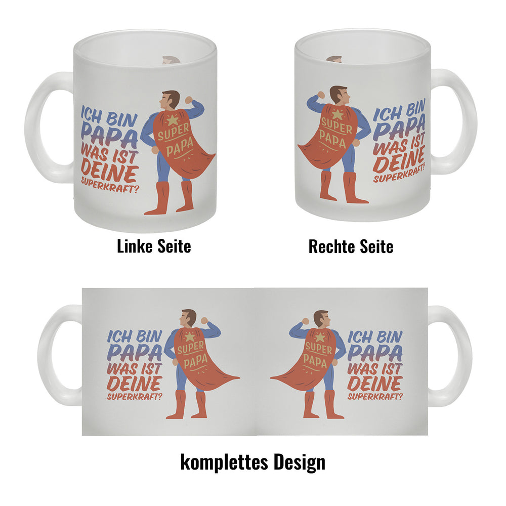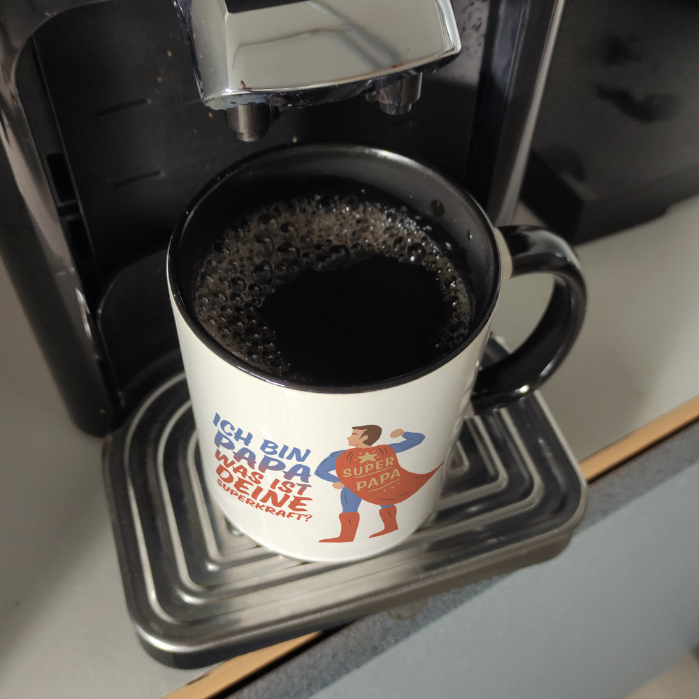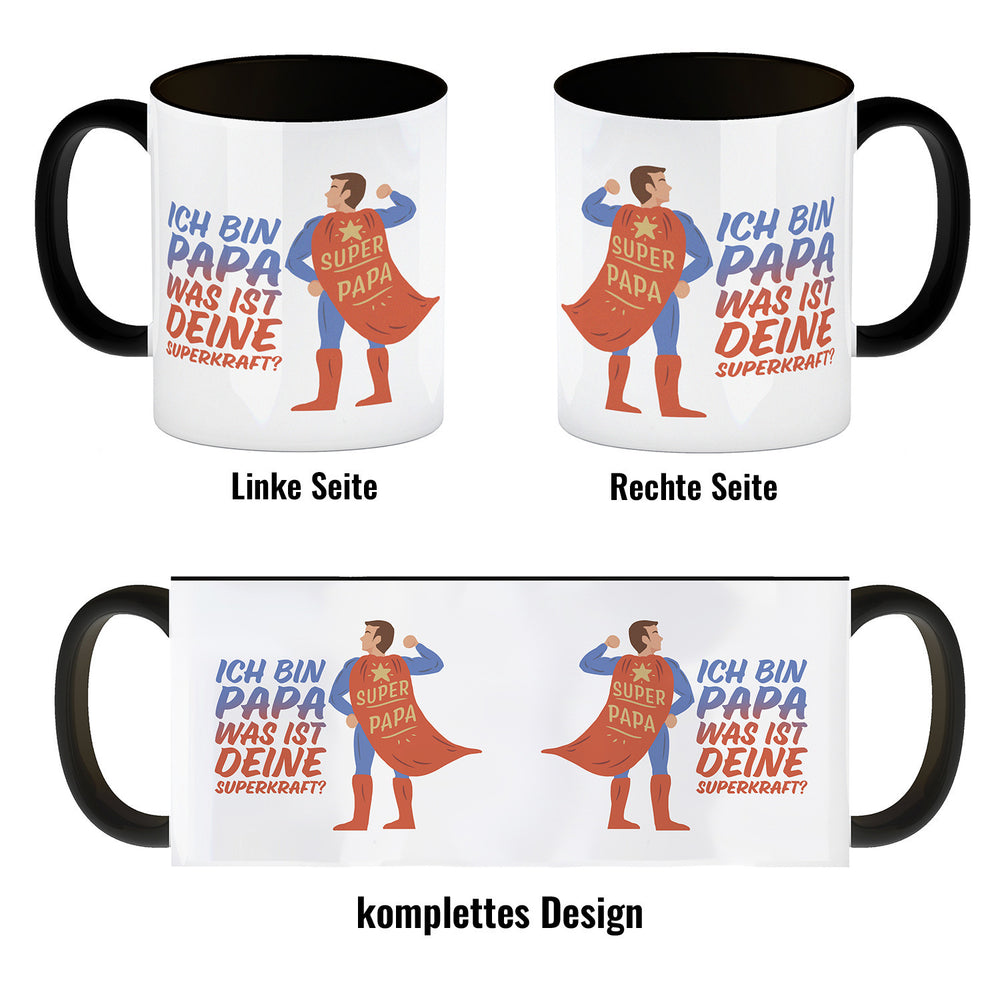 - 1x Ich bin Papa was ist deine Superkraft Kaffeebecher mit Superheldmotiv in der gewählten Ausführung