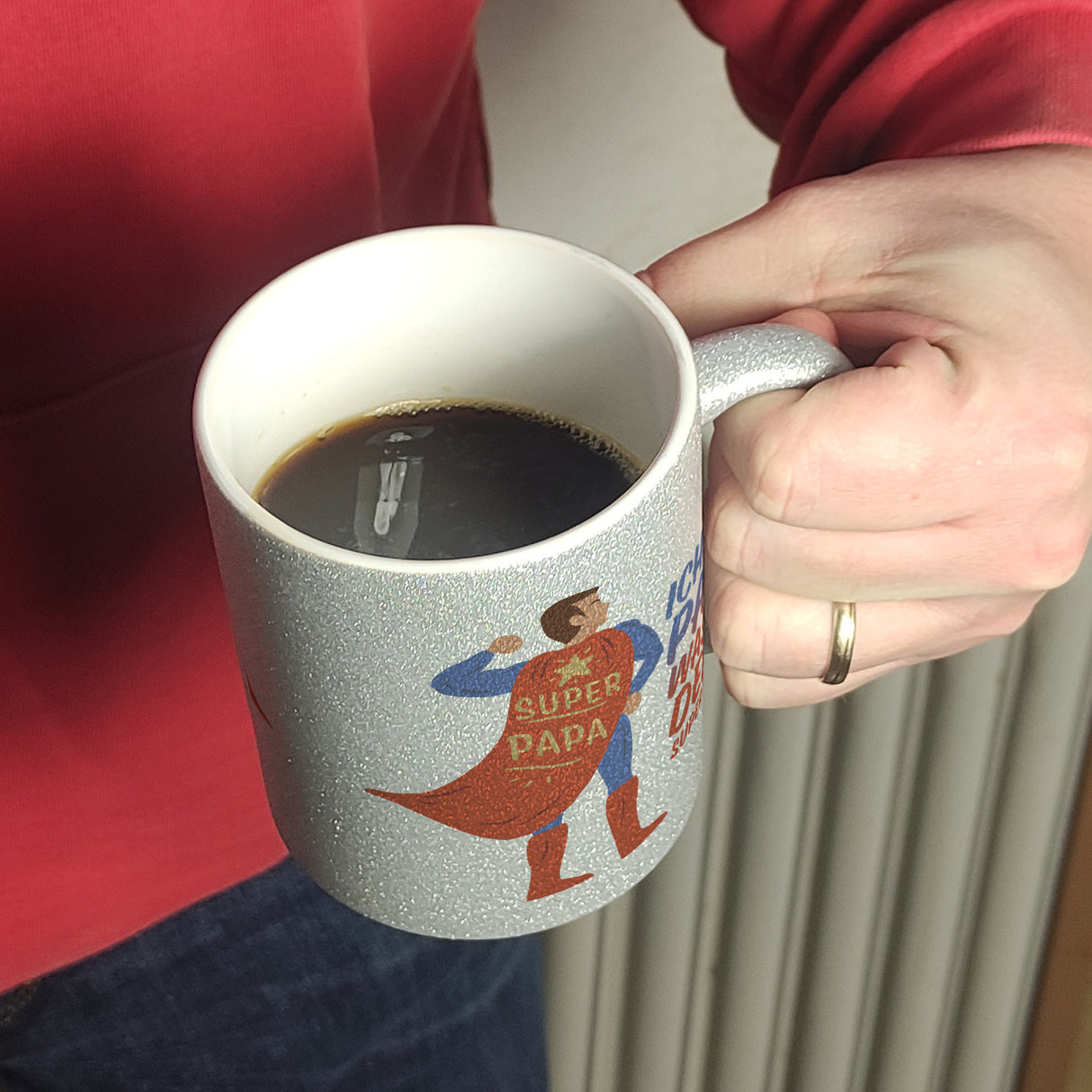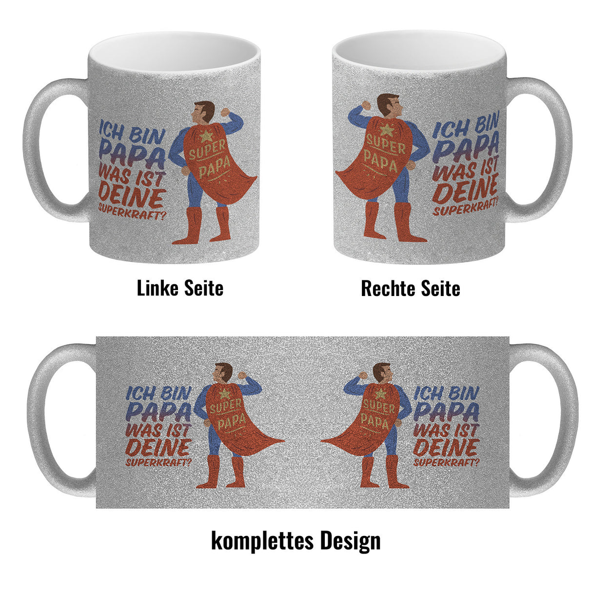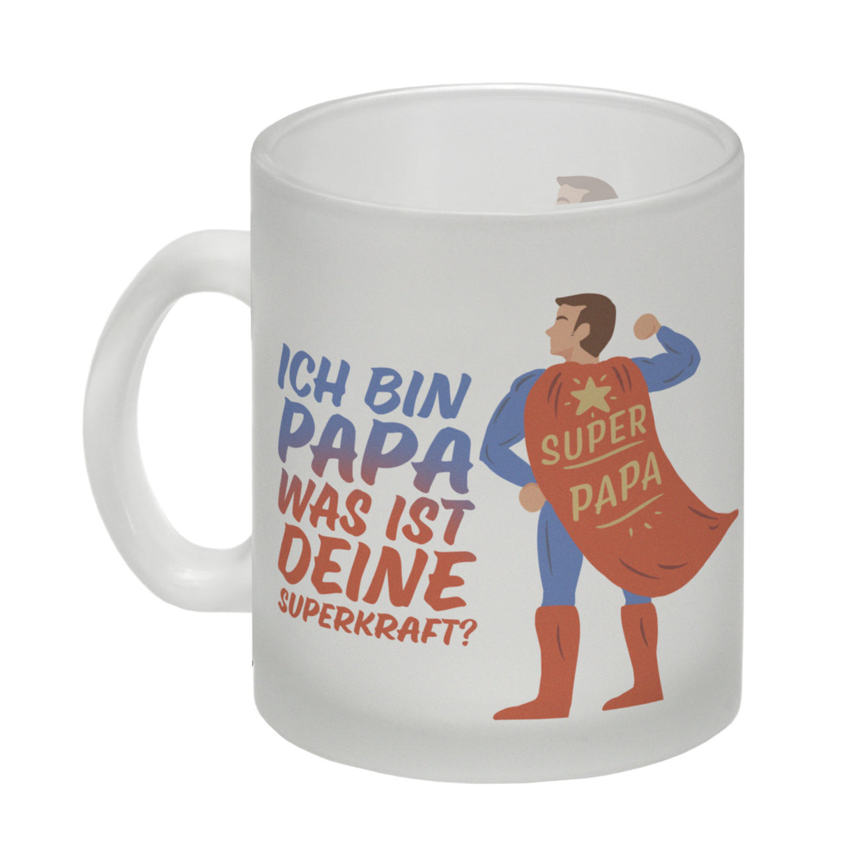 - 1x Ich bin Papa was ist deine Superkraft Kaffeebecher mit Superheldmotiv in der gewählten Ausführung