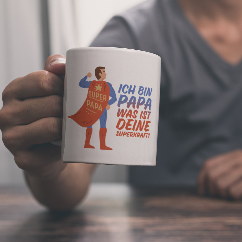 - Dein Vater ist dein absolutes Vorbild und du willst ihm zum Vatertag mit etwas ganze Besonderem überraschen? Dann schenke ihm diese tolle Tasse mit Superheldmotiv und dem Spruch: Ich bin Papa - was ist deine Superkraft?